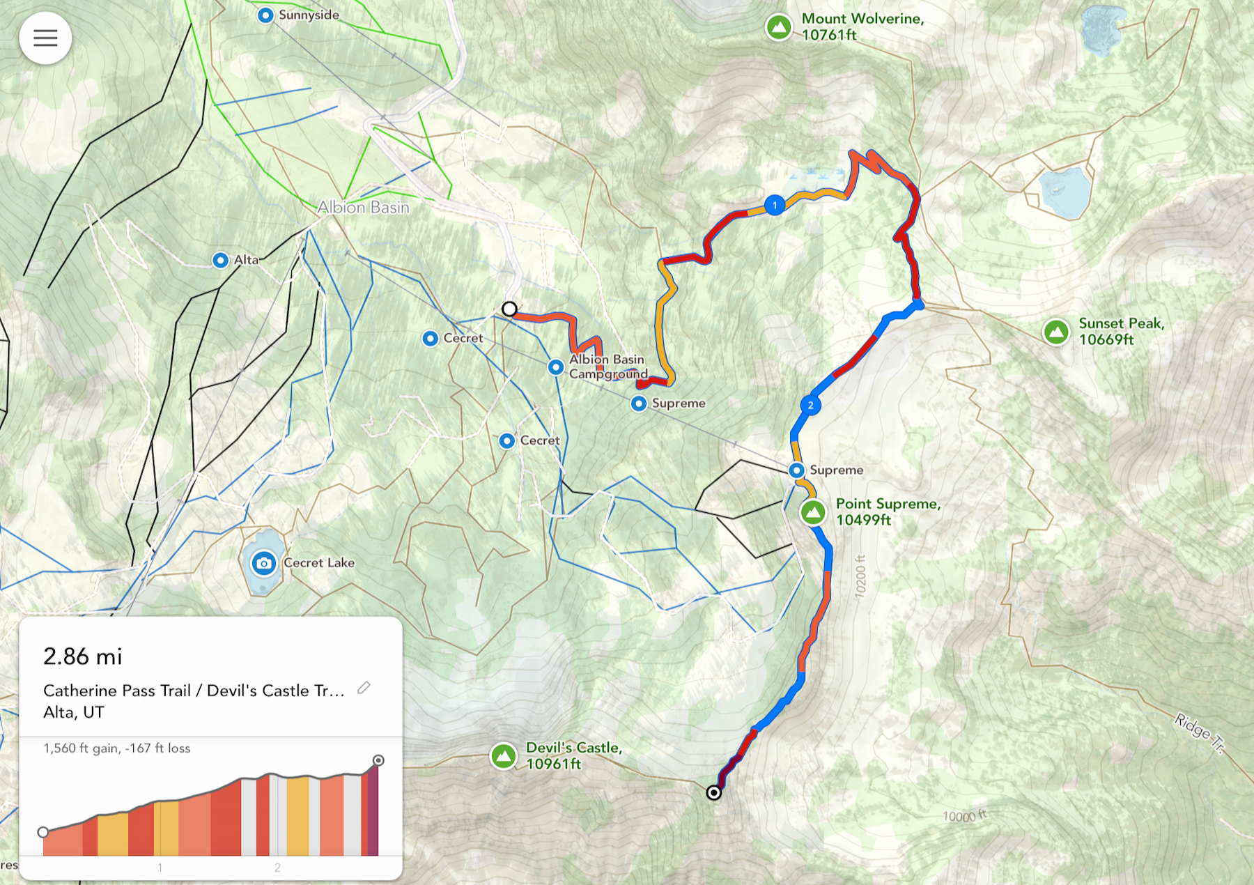 This week’s hike was back at Alta. Last year I was thwarted in my attempt to get past Devil’s Castle going east and I thought it might be a good time of year to come at Old Scratch from the east side going west.