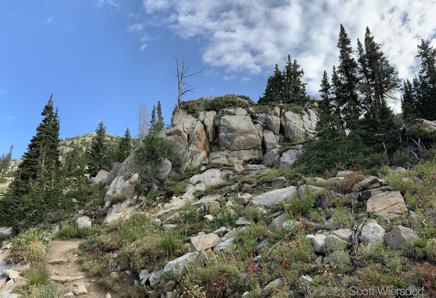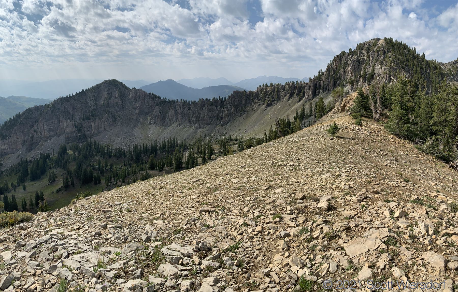 I made it to my destination and toyed with the idea of going further along the ridge to East Castle but decided against it. I came down a smooth area between Eagle Peak and East Castle.