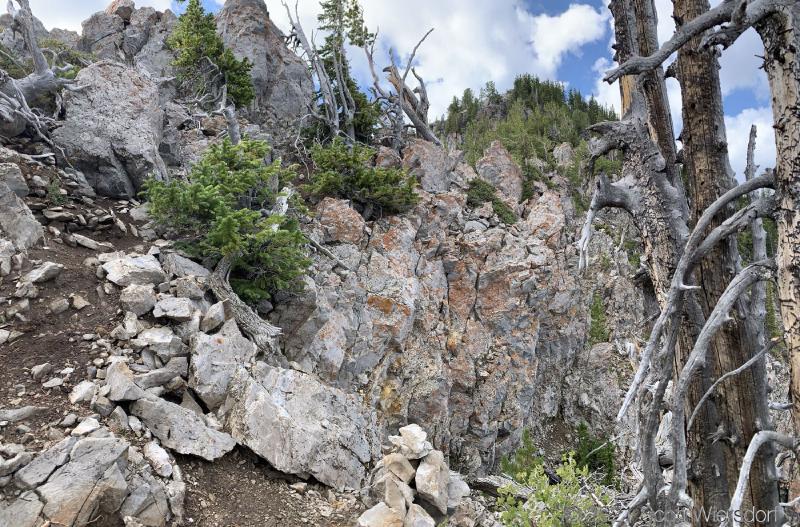 So close, yet so far. The cairn (bottom center) is hard to see clearly here, but indicated to drop off the ridge and go around this particular section of ridge.