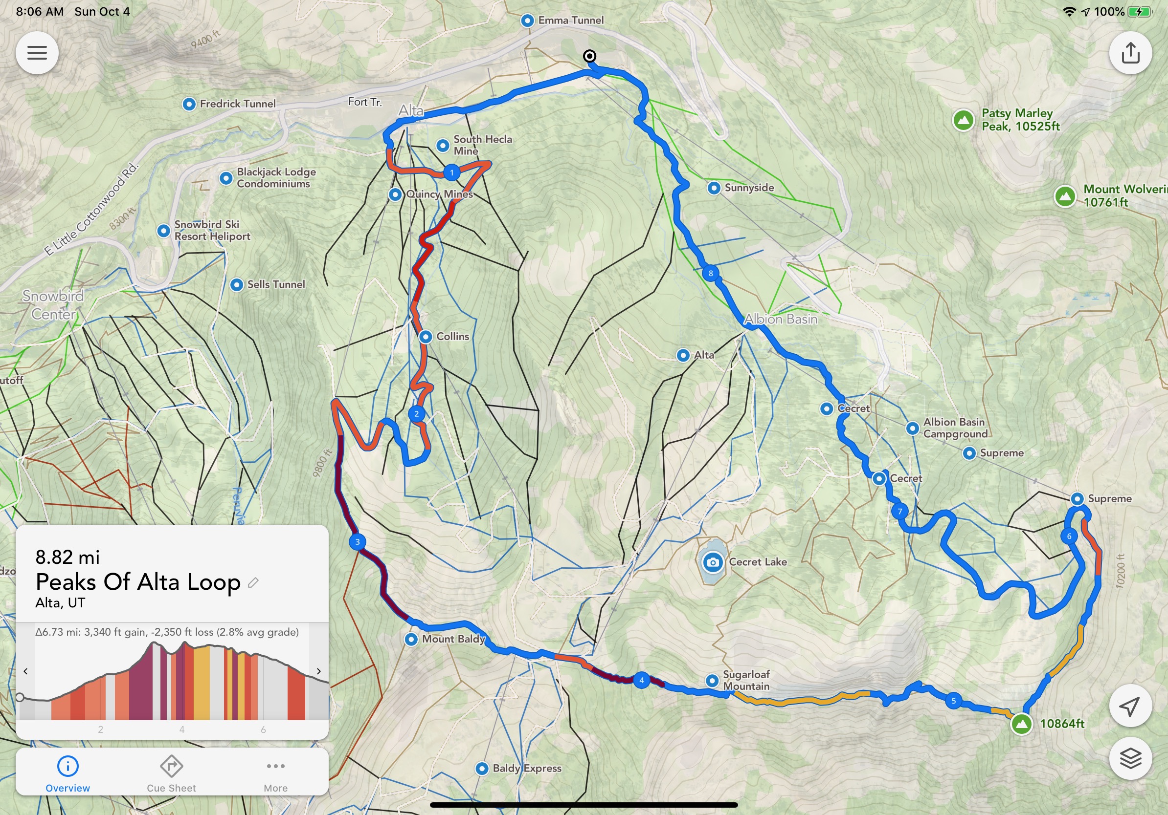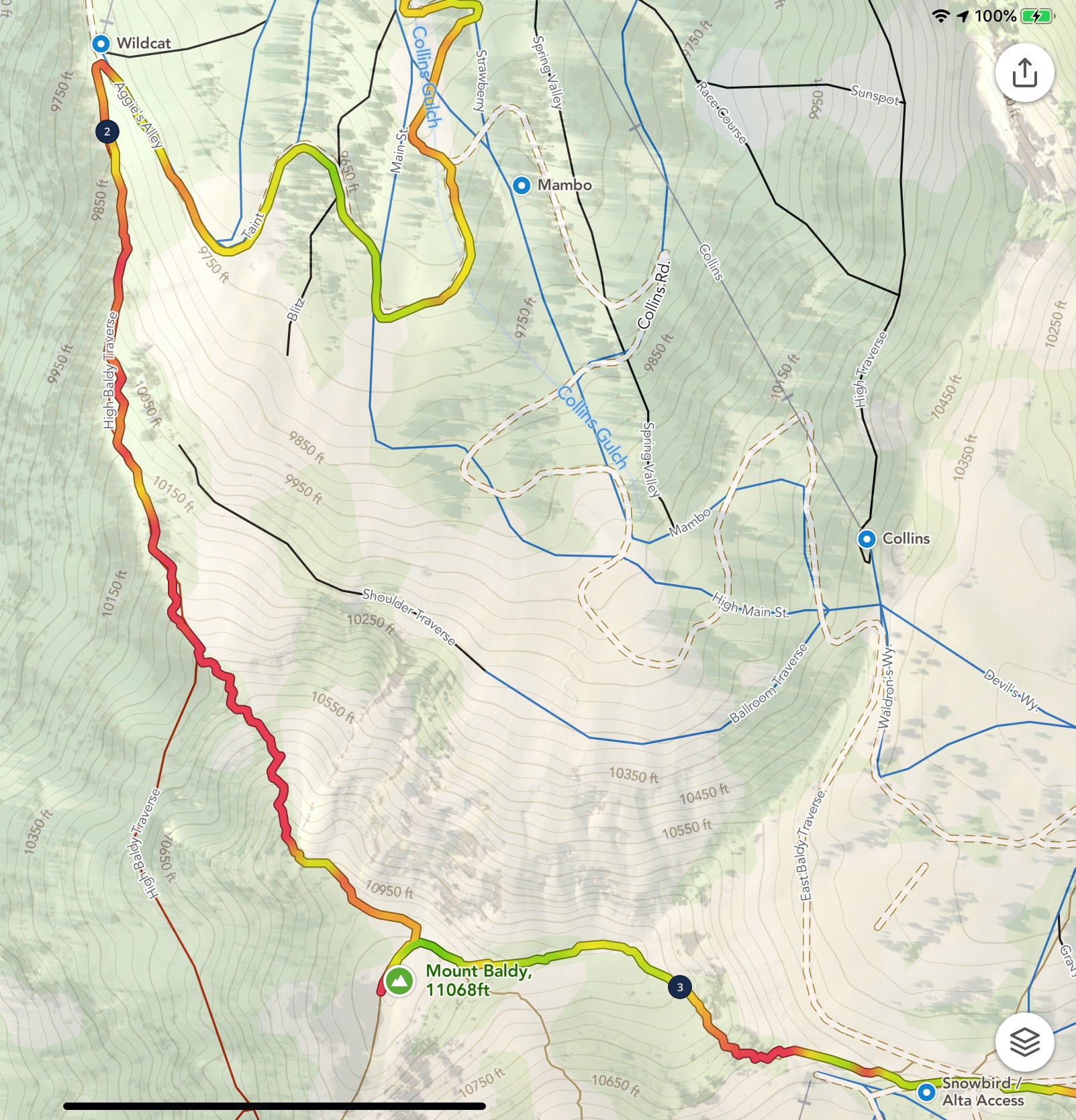 All done! From Wildcat Base to Mount Baldy summit took about an hour and a half, and nearly all of the elevation gains for the day.