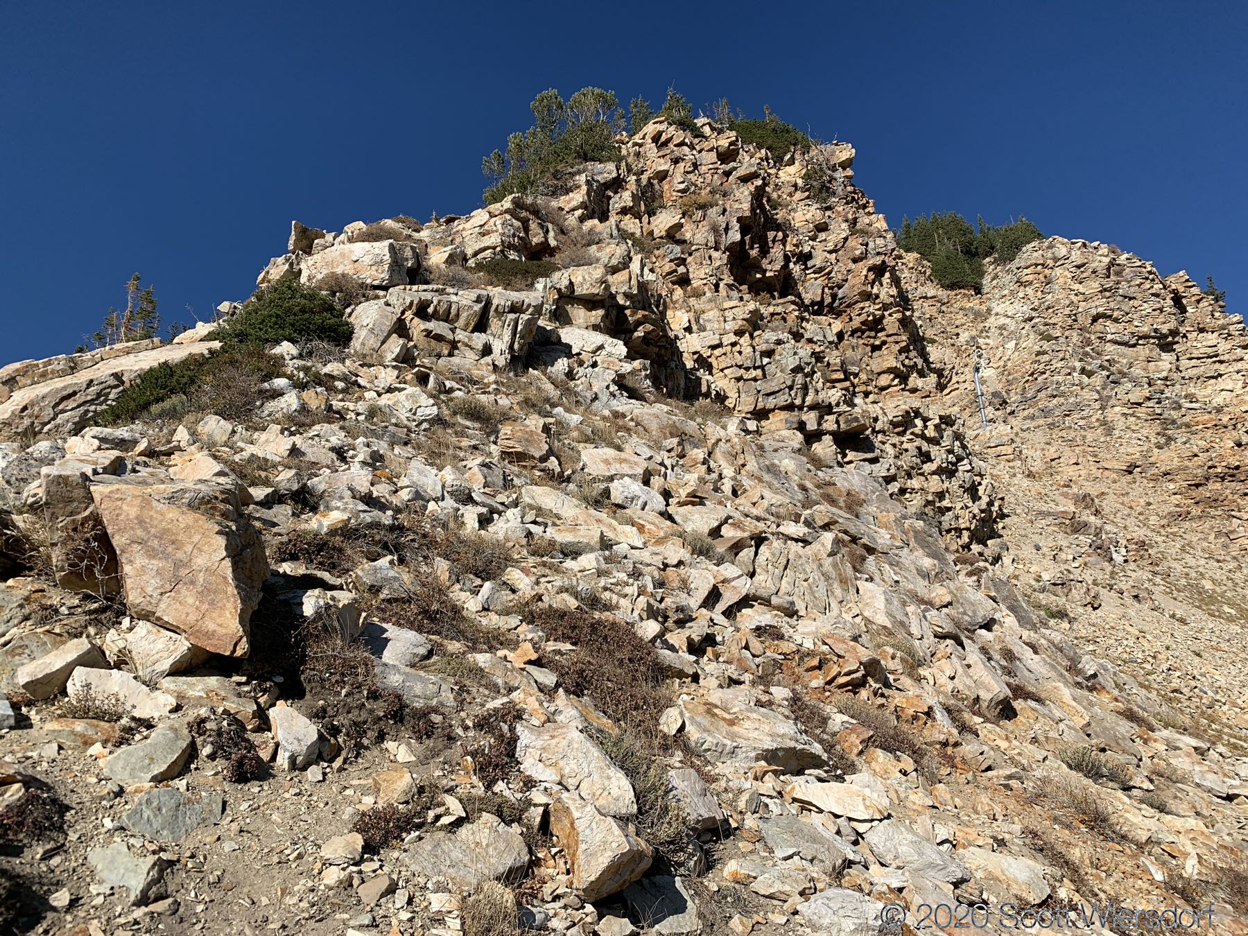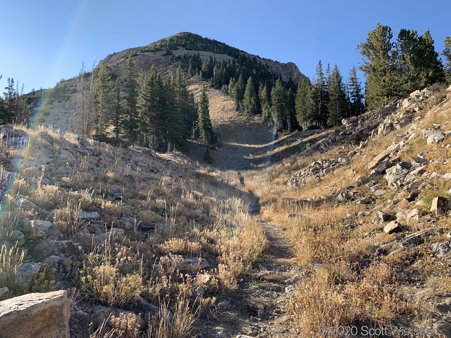 The next section from Mount Baldy to Sugarloaf was fairly clean to hike, other than a little confusion as I got to the bottom of the east shoulder of Mount Baldy. The route stays to the left in this image: