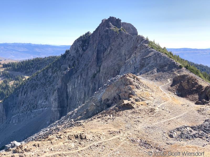 I suspect that you have to drop a bit of elevation earlier on the trail (avoiding the ridgeline) in order to get below (to the right of in this photo) the rock. I may hike the ridge from the other direction to verify that sometime.