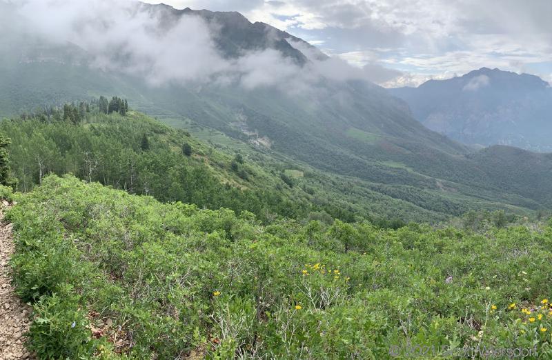After a long-anticipated downpour on Thursday, I figured Friday morning would be nice and cool. It was technically cool, but for Utah the humidity was high and I felt that I was swimming in my clothing almost from the start of the trailhead.