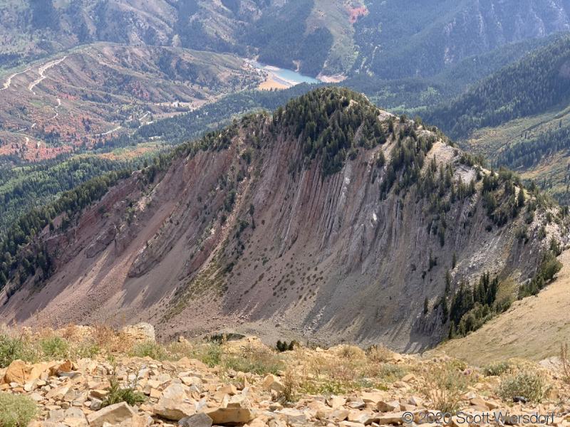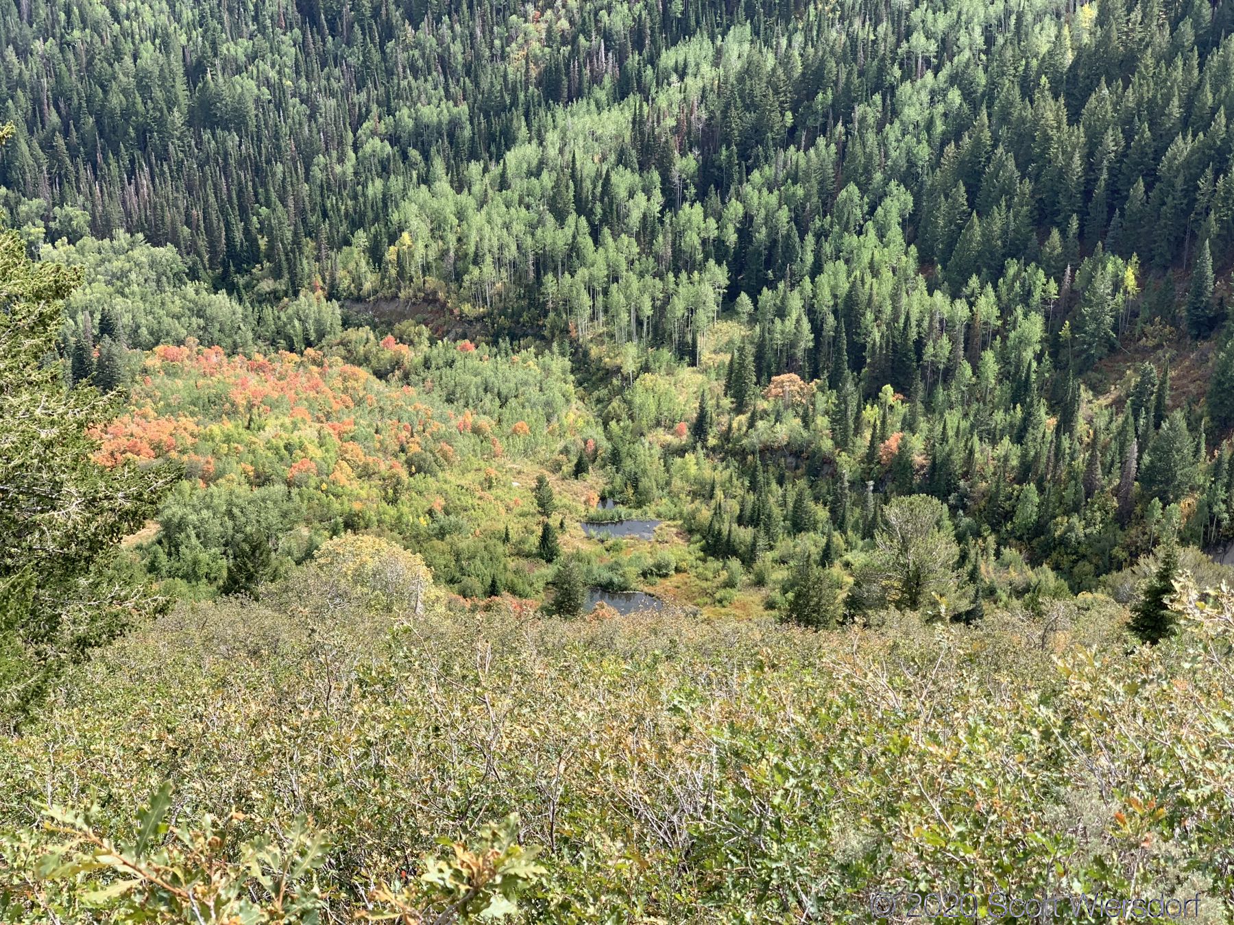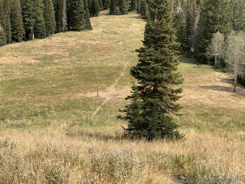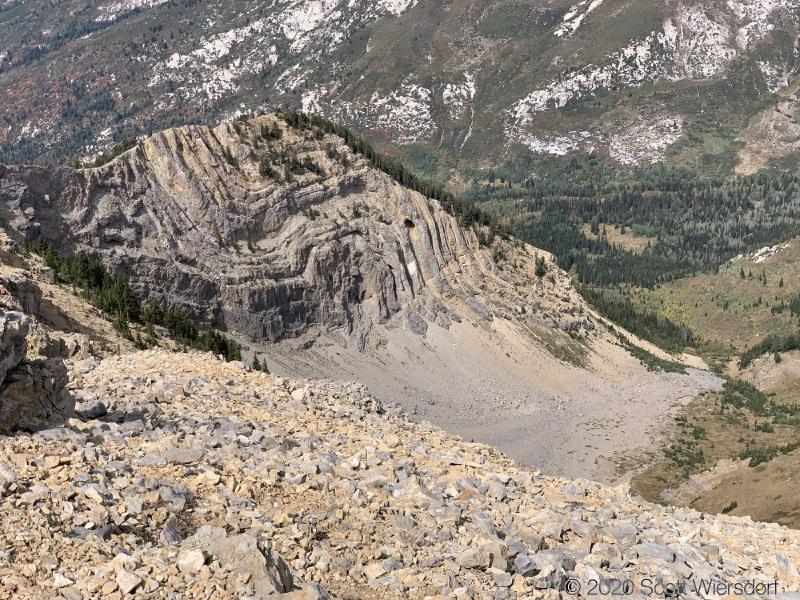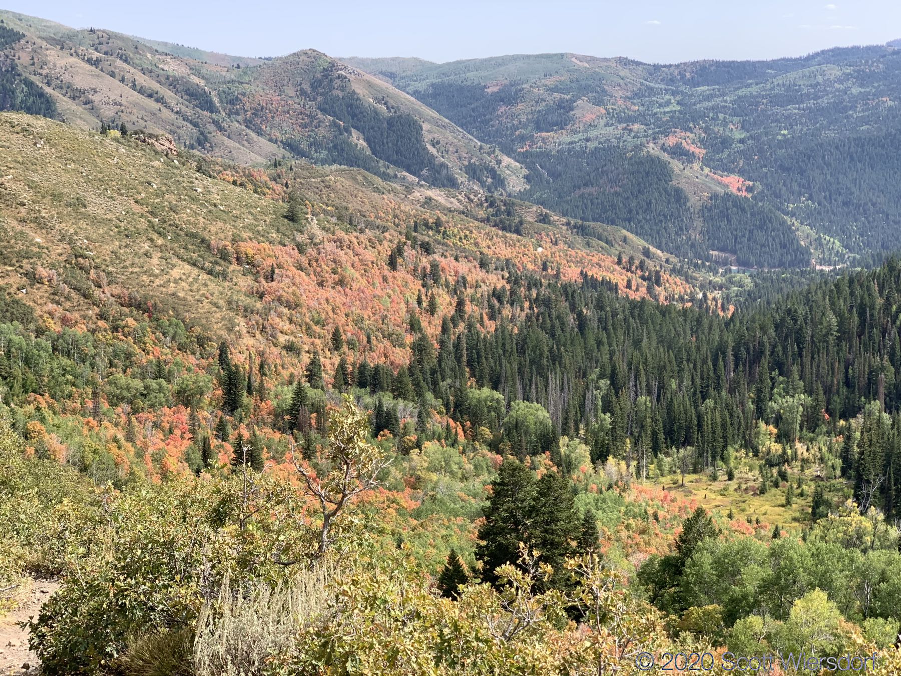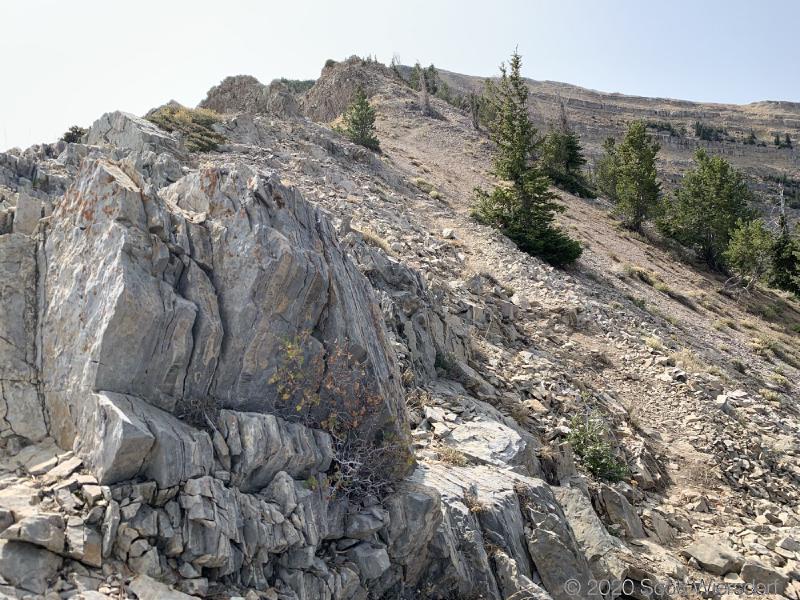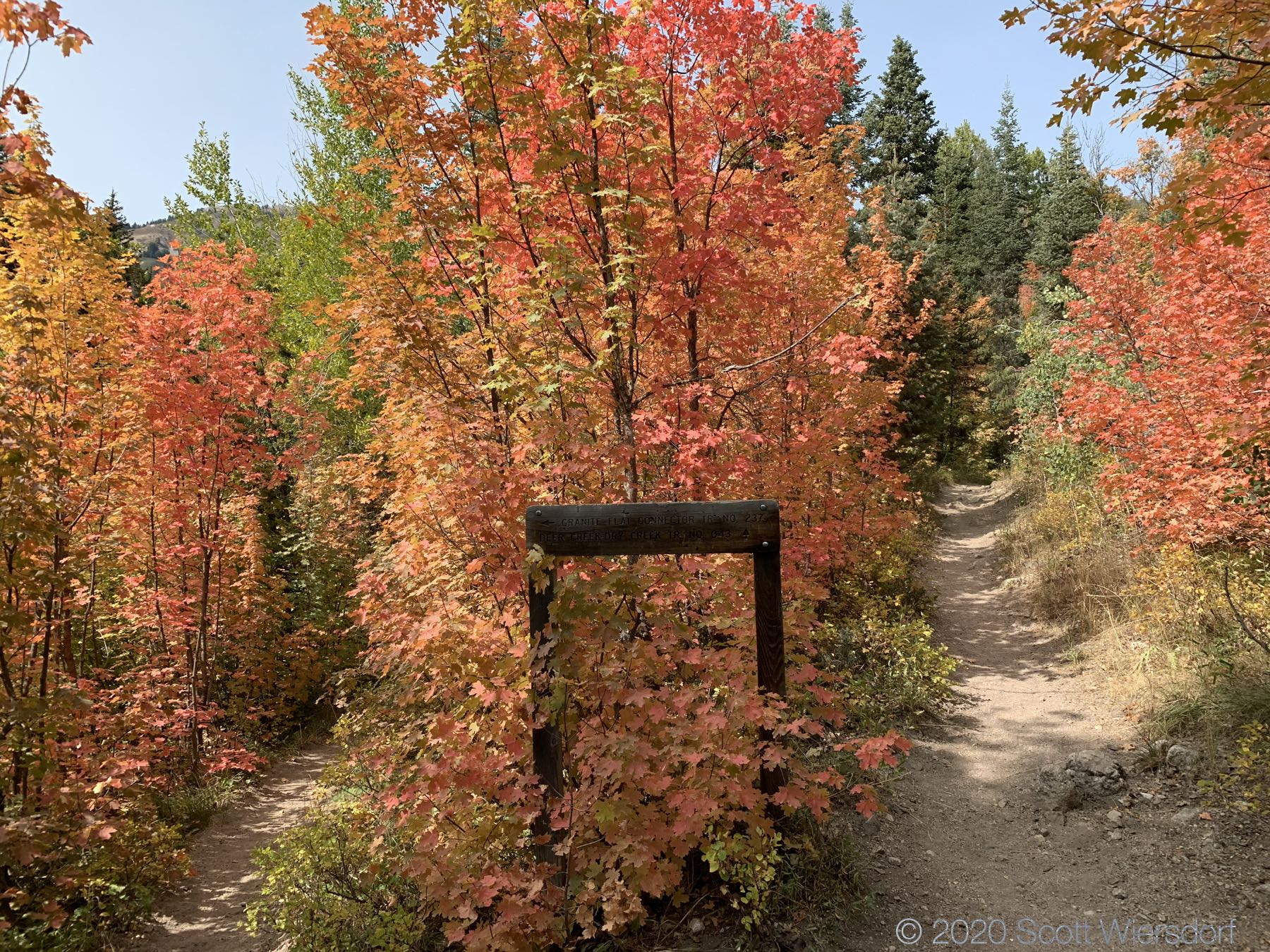 The trail has about the same orientation as the Aspen Grove approach to Mount Timpanogos: facing east and mostly exposed to the sun all day. However, unlike the Aspen Grove approach to Timp, the Box Elder Peak trail has little stands of maples, aspens, firs, and pines that give you some welcome shade roughly every quarter mile or so.