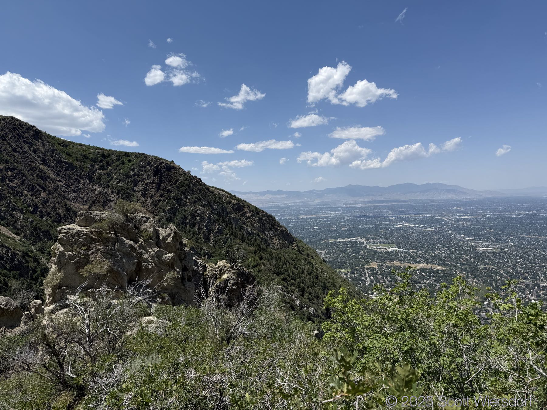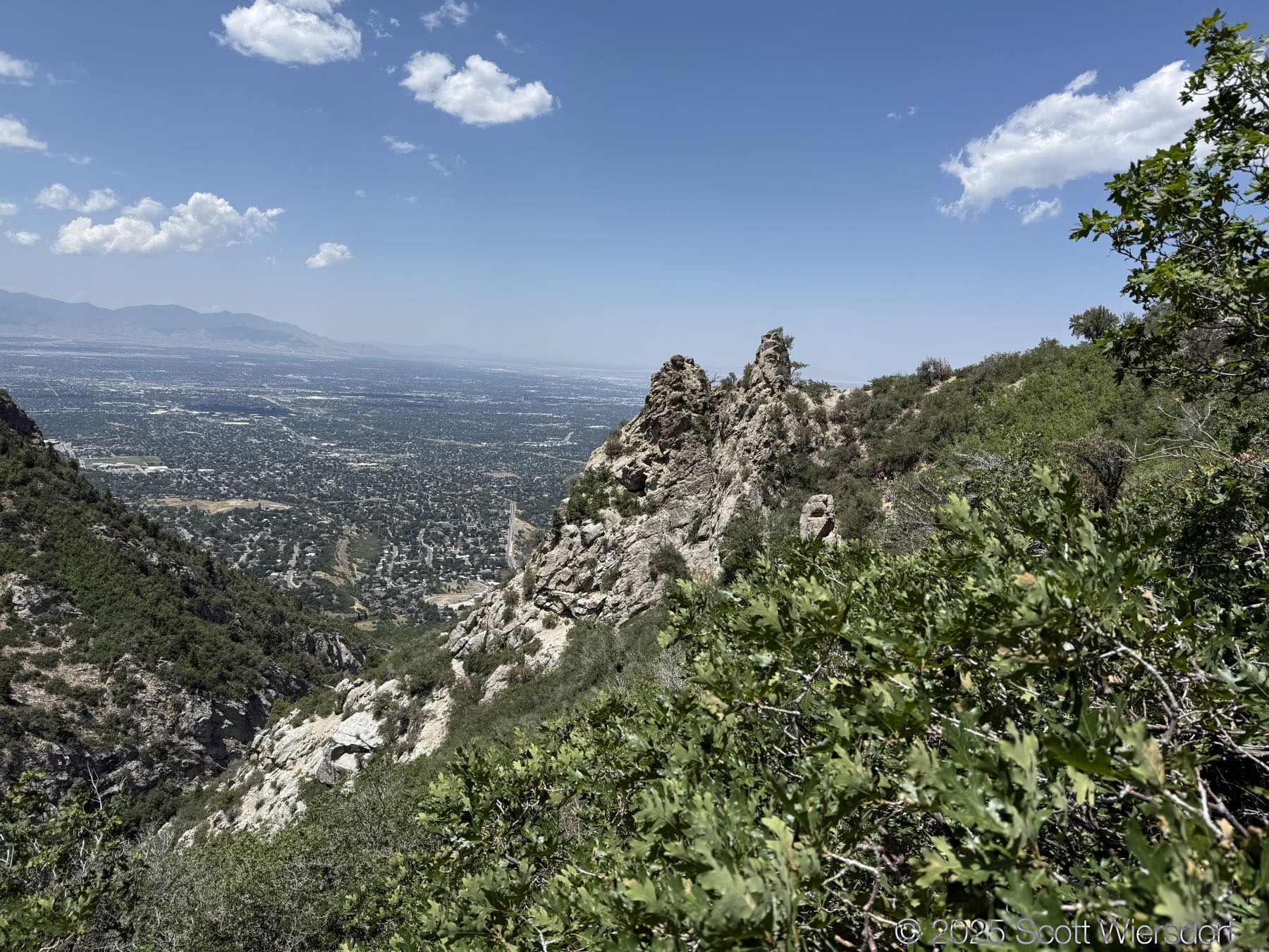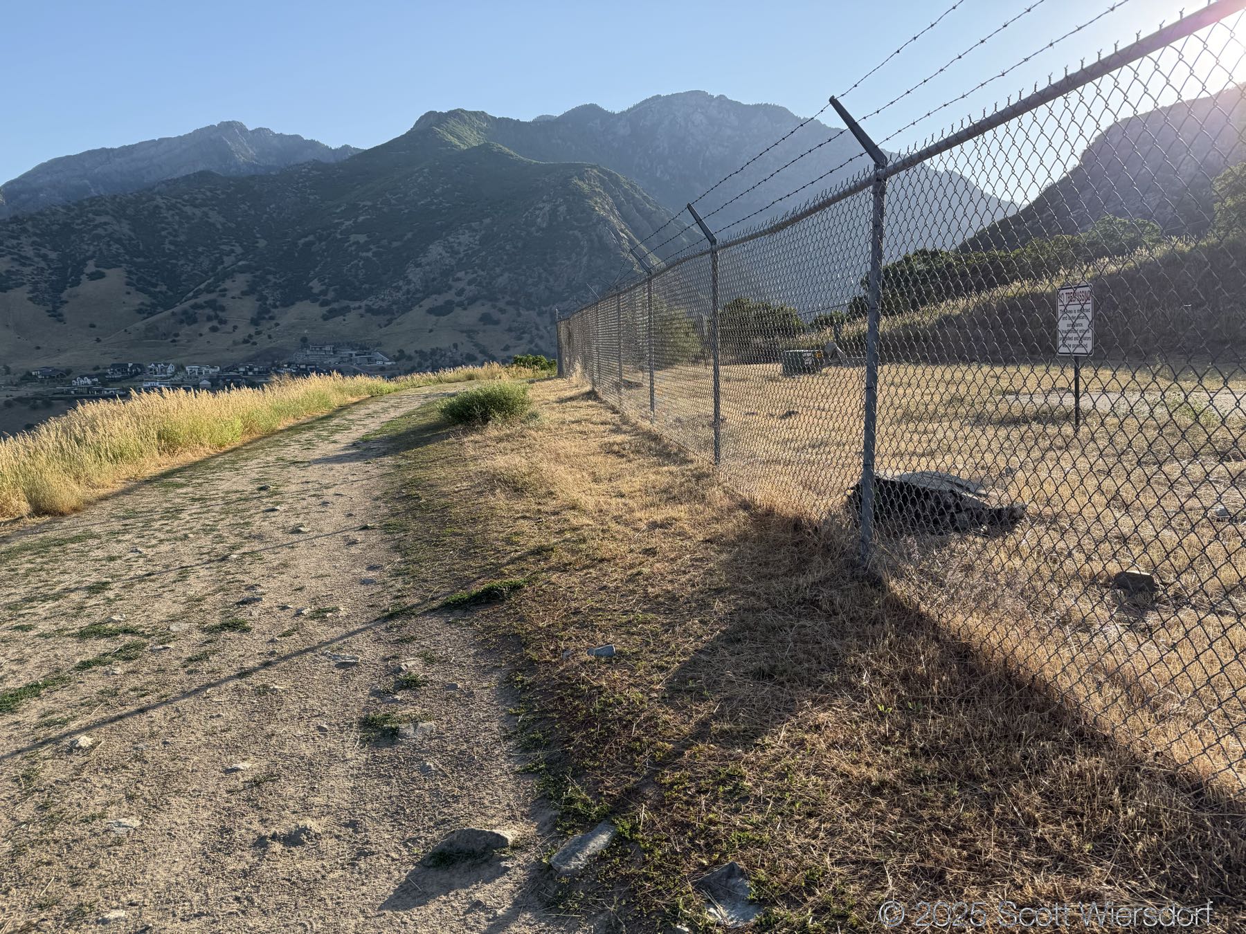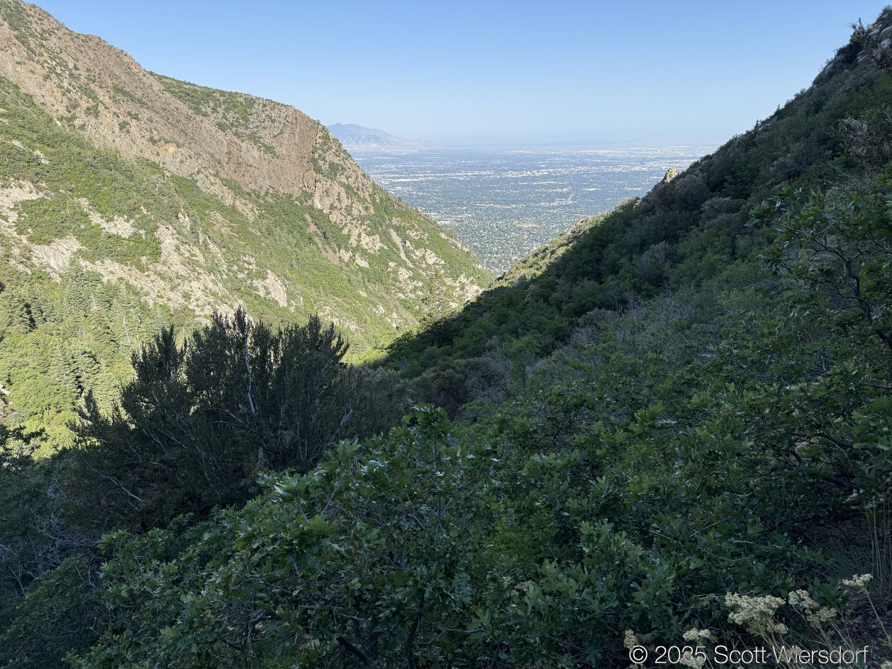 The first quarter mile or so is mostly level or downhill. You’ll pass a water tank with views of the mouth of Big Cottonwood Canyon.