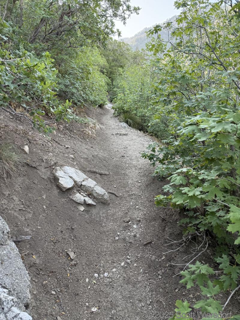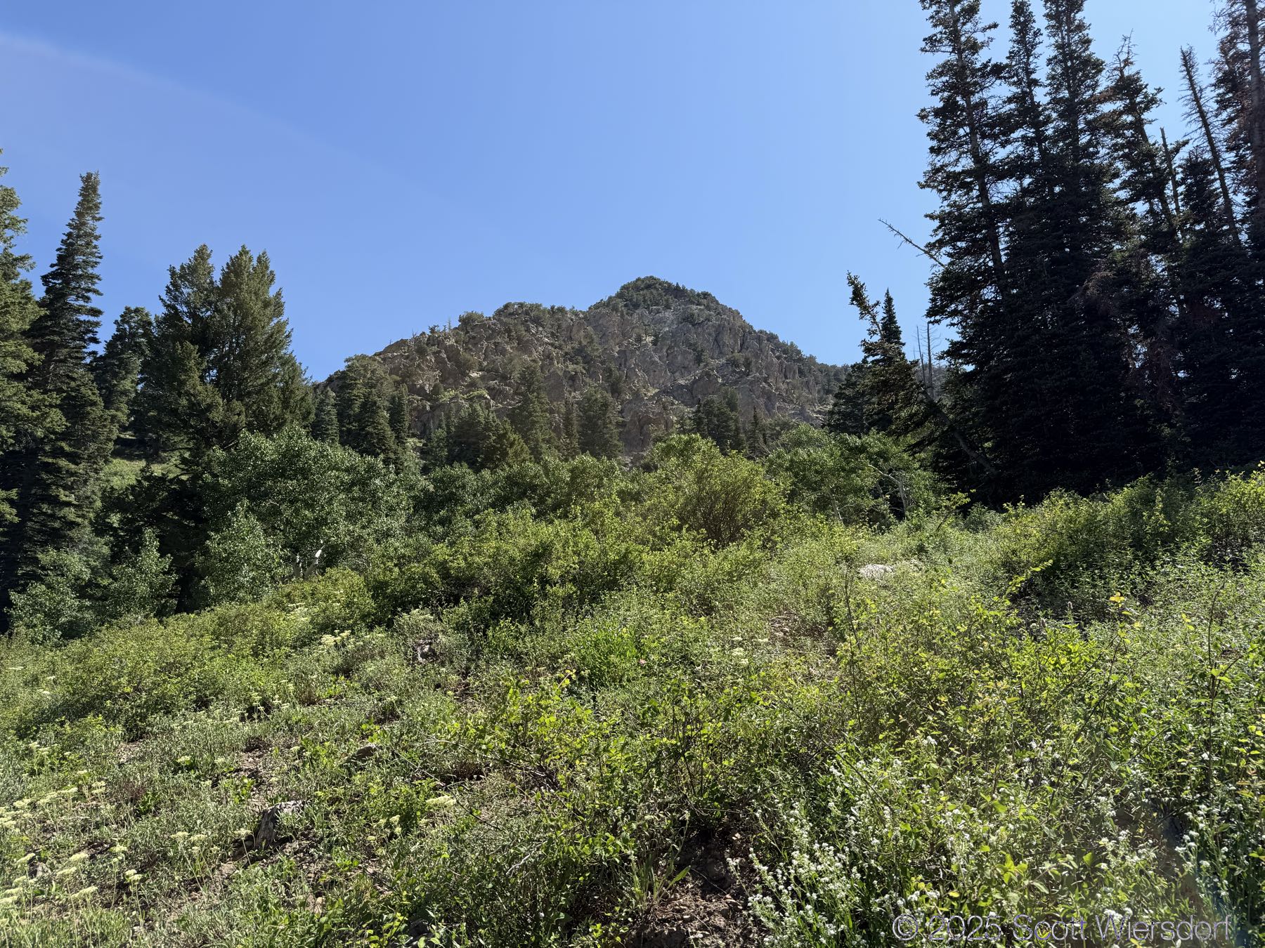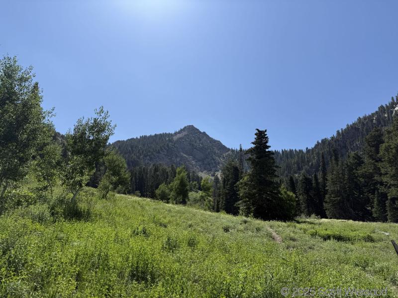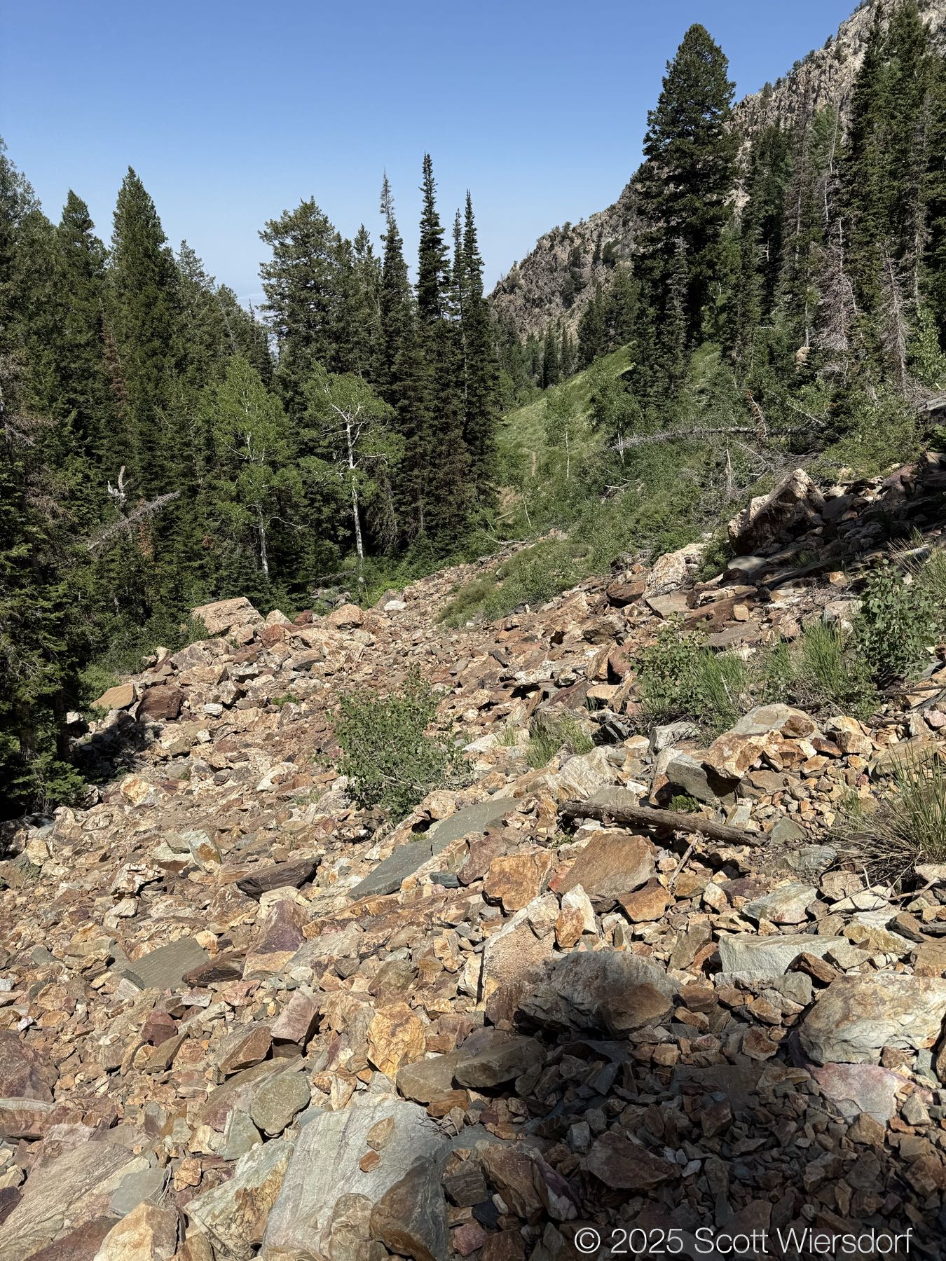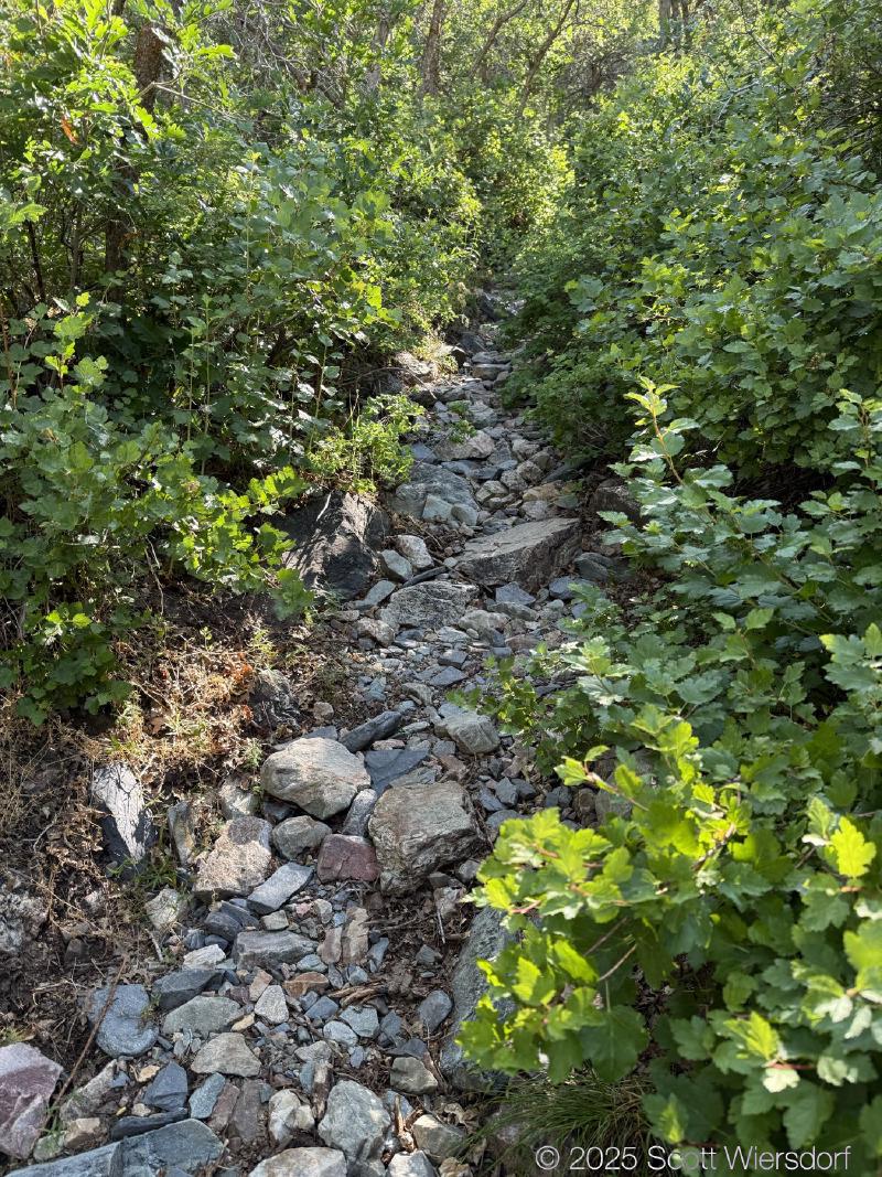 The trail officially peters out at a rock field, but cairns guide those who want to continue up toward the ridge that some take toward the Salt Lake Twins.