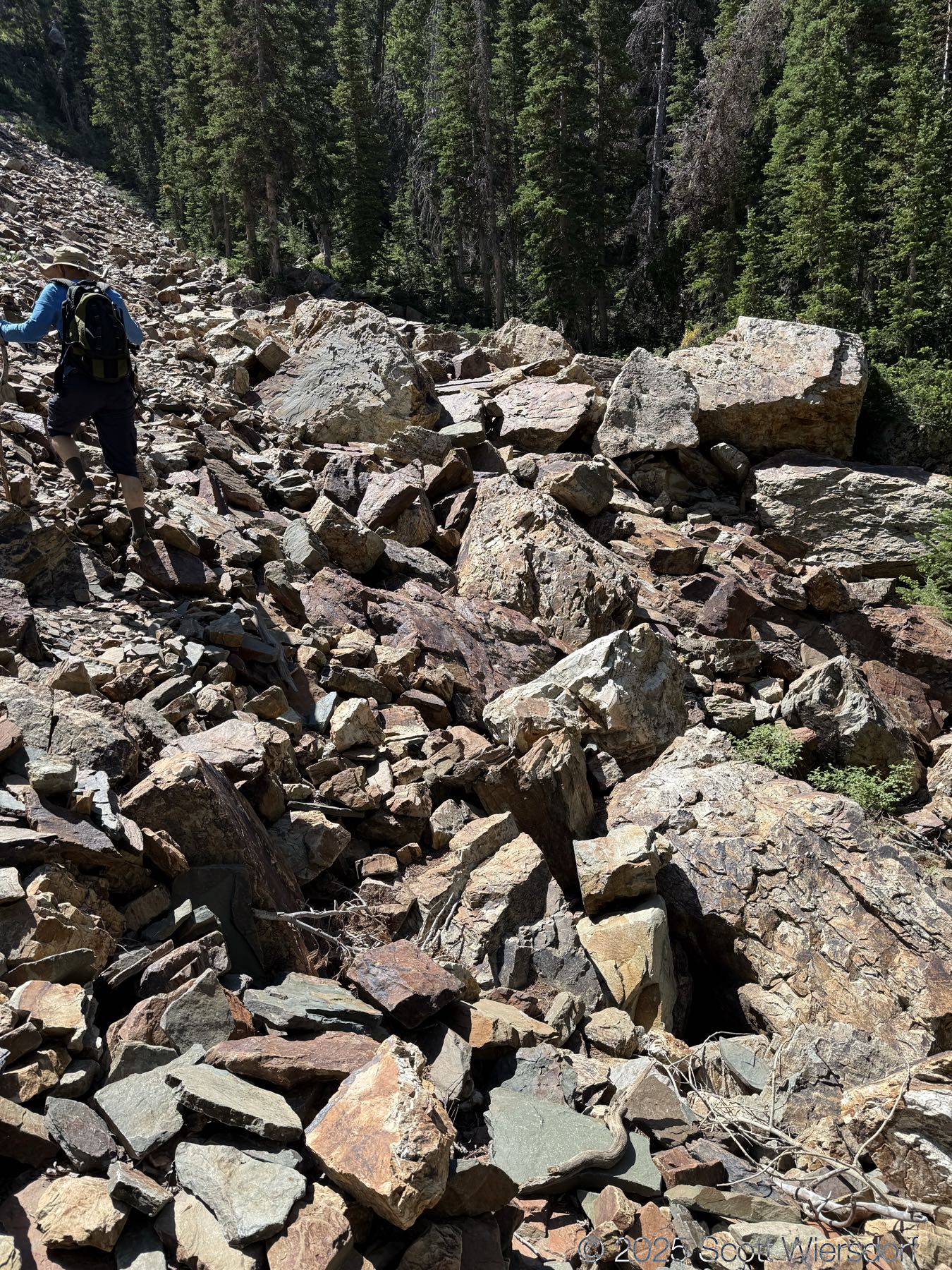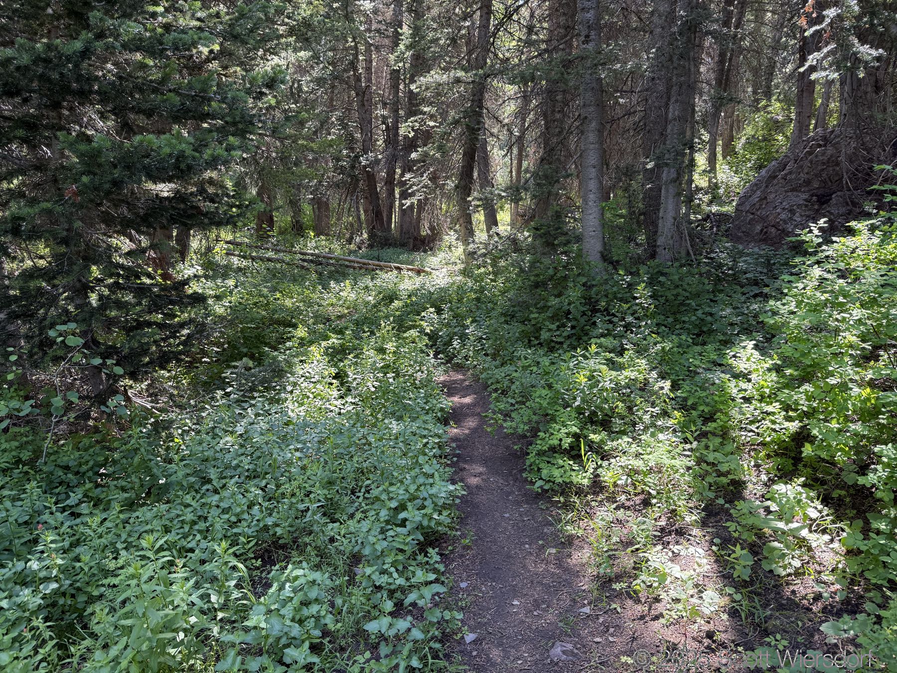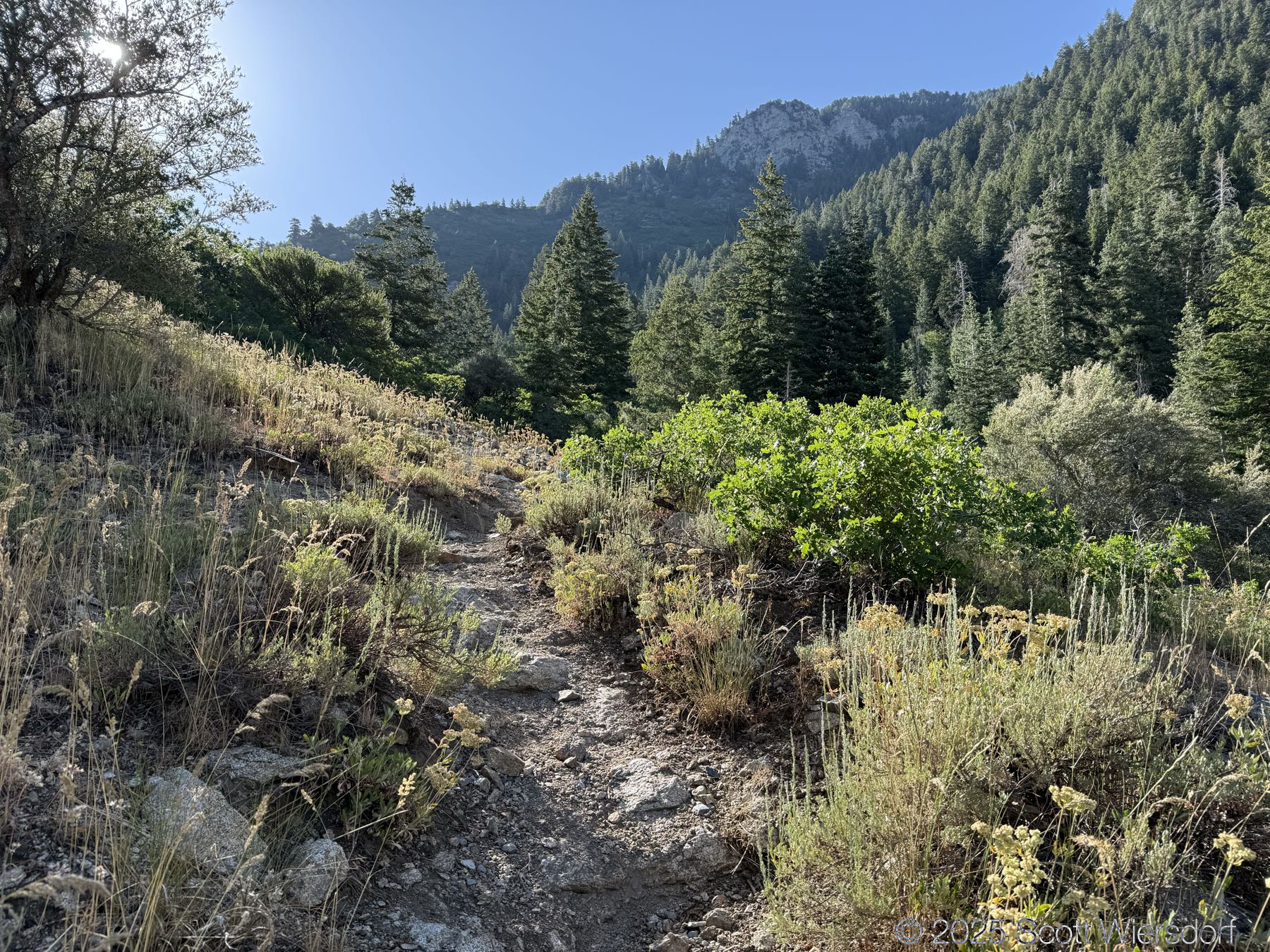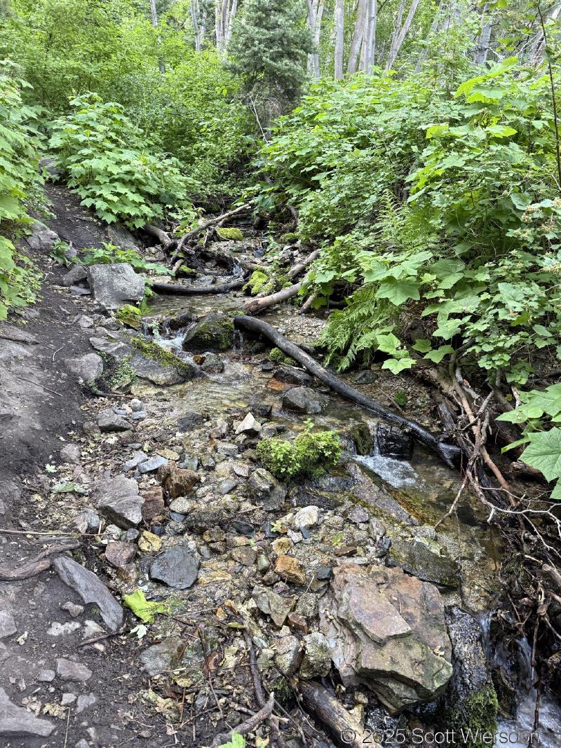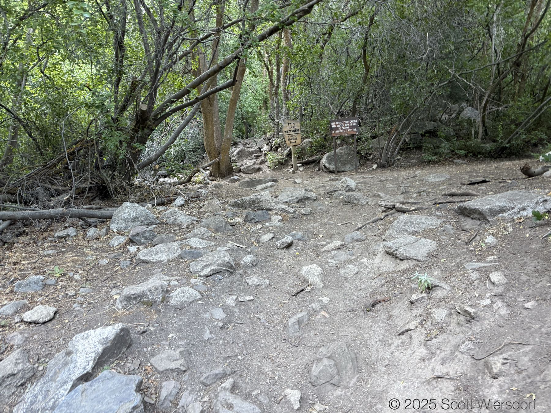 The trail officially peters out at a rock field, but cairns guide those who want to continue up toward the ridge that some take toward the Salt Lake Twins.