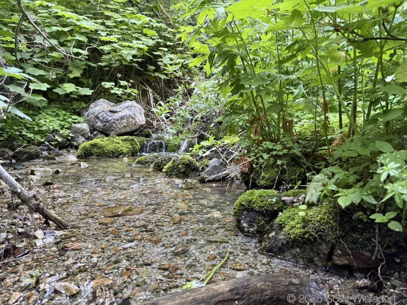 You’ll cross the creek a few times. I would imagine that in spring these crossings would mean wet feet, but with the water this low there were enough rocks or logs to stay dry.