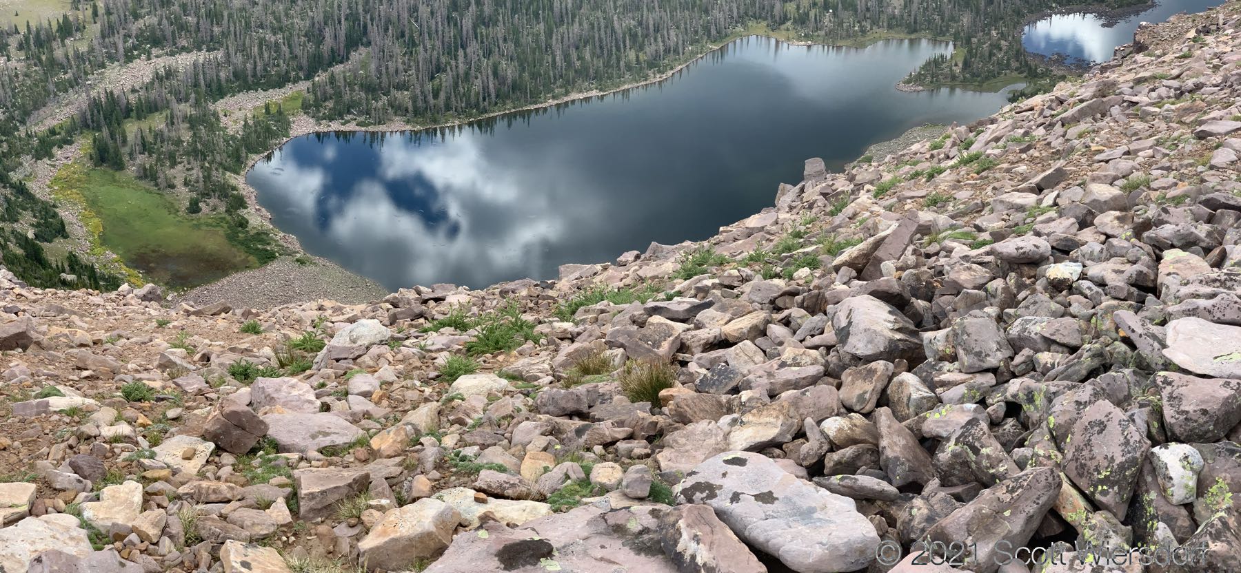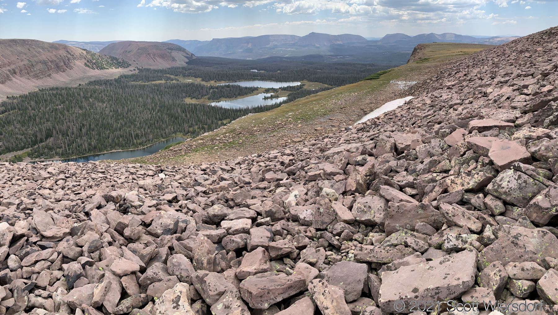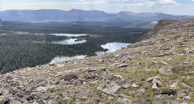 Turning south you see Four Lakes Basin just below and Grandaddy Basin a few miles away: