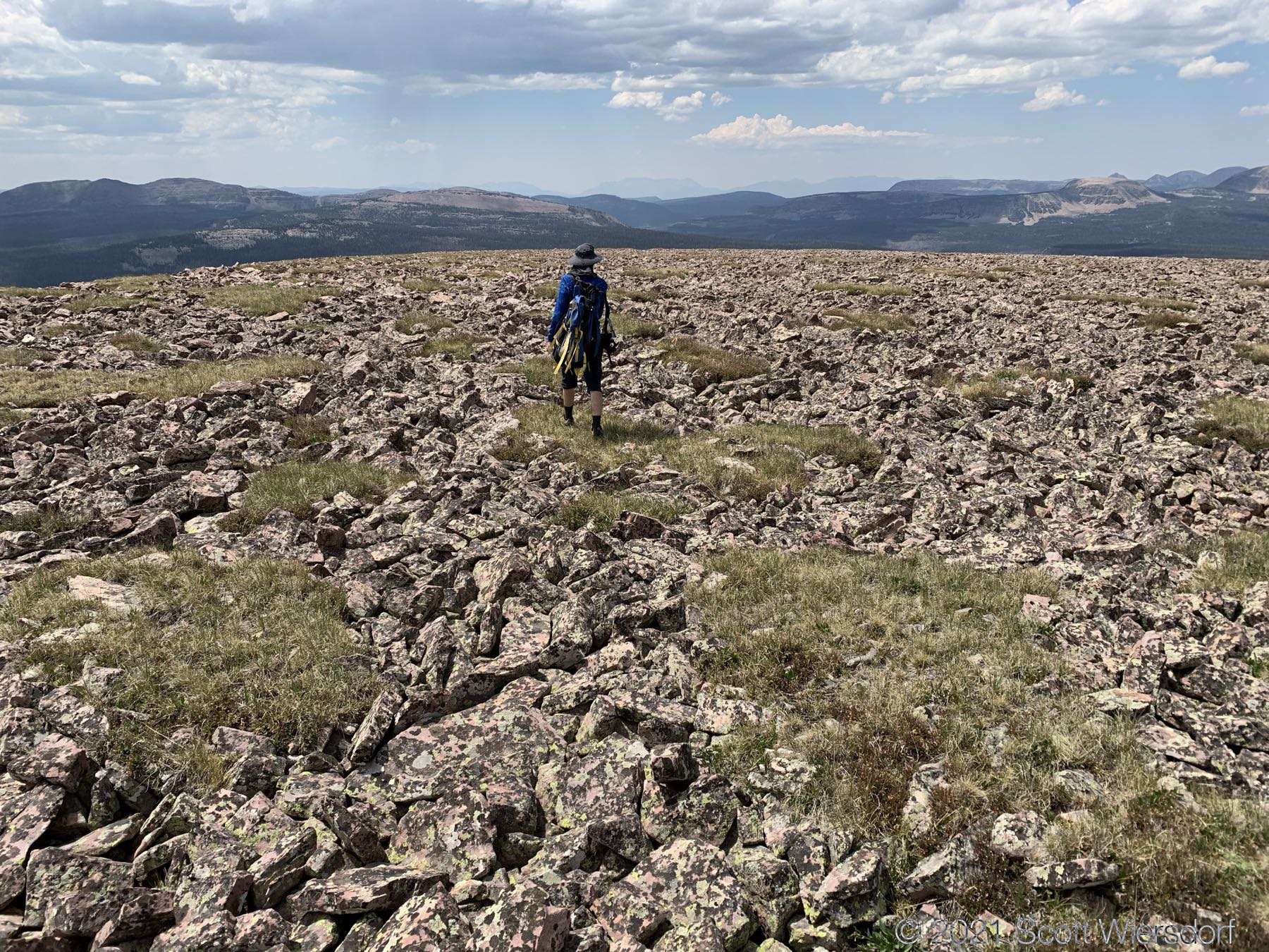 Moving west along the ridge, the ground begins to broaden again and slopes away to the south into Four Lakes Basin:
