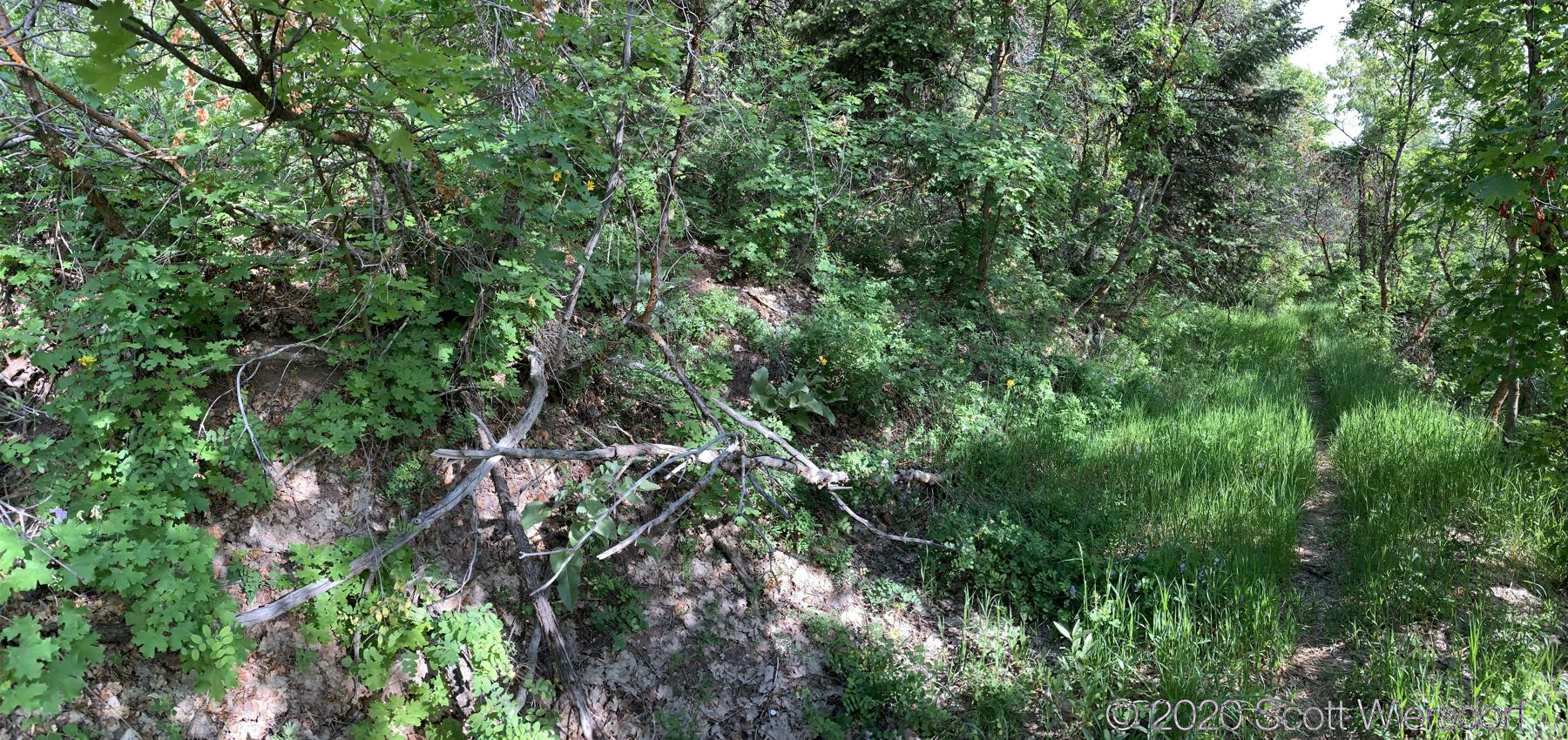 Because the route up the ridge is not maintained, sections of the path are overgrown or otherwise erased.