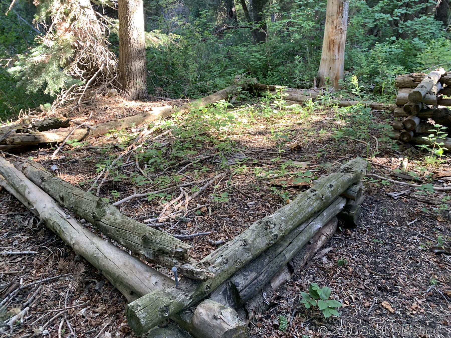 I wandered all over where the trail should have been, zig-zagging, checking my GPS coordinates, etc. I’m pretty good with maps and I had solid GPS signal. What made this frustrating were the little markers that seemed to indicate that I was close: a railing across a creek crossing, a half-built log cabin in the woods marking someone’s failed Waldenponding adventure, phantom trails that disappeared after 50 feet, etc. I would love (and invite) anyone to please be my guide next time I try this route (note: I will never try this route again).