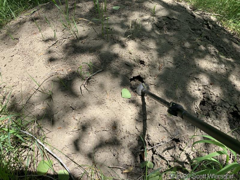 I found a large ant mount and poked it with my trekker pole in a few places. Ants poured out of every hole. This mound was about 8–10 feet in diameter: