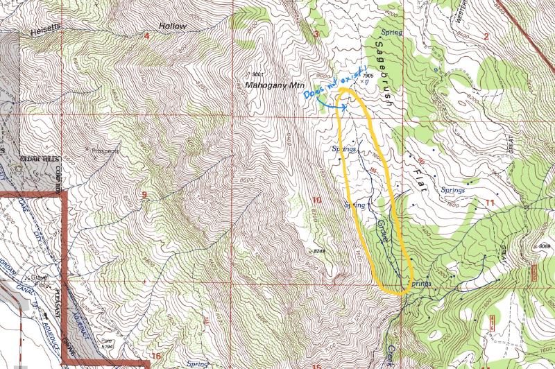 I had originally planned to take the (missing) trail up across Sagebrush Flat and get me close enough to the saddle I could then take the known trail to the summit.