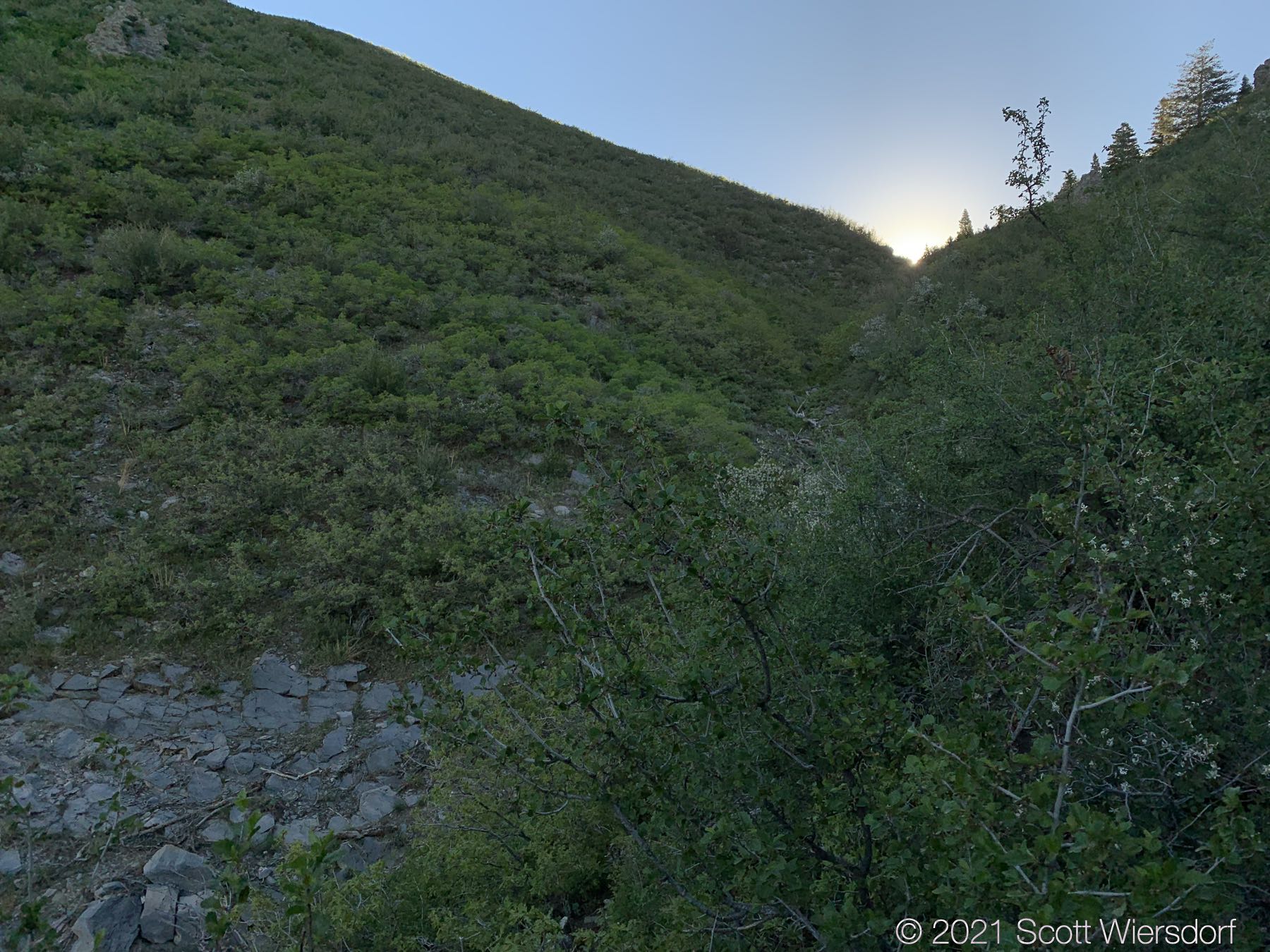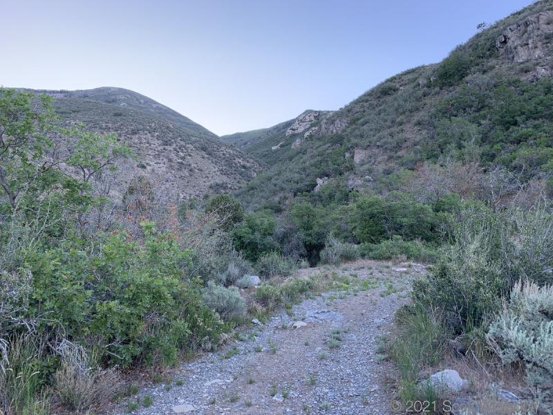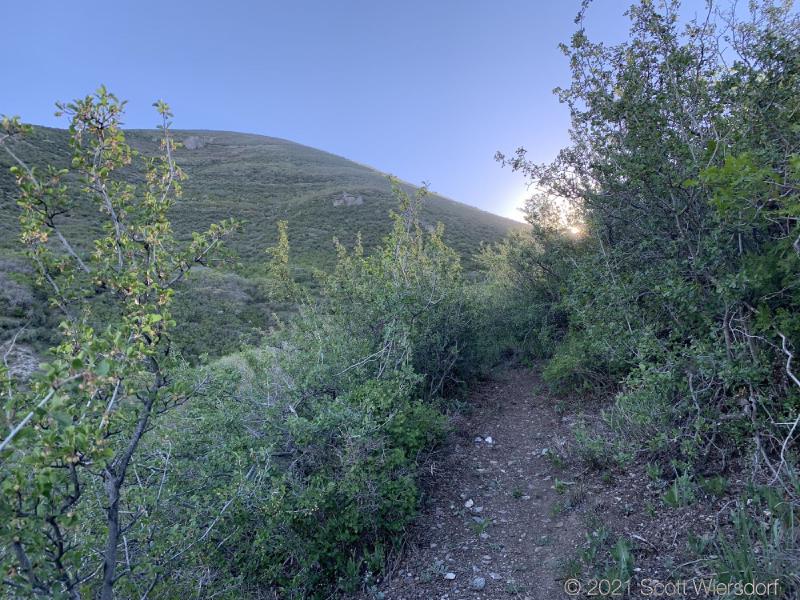 The first half-mile of the trail is an old service road. Some (possibly all) of this property belongs to the City of Cedar Hills. It’s kind of a mess of trails and roads that loop and criss-cross. I had gone up to the trailhead the night before to walk the first half mile to see if I could find my way into Heisetts Hollow.