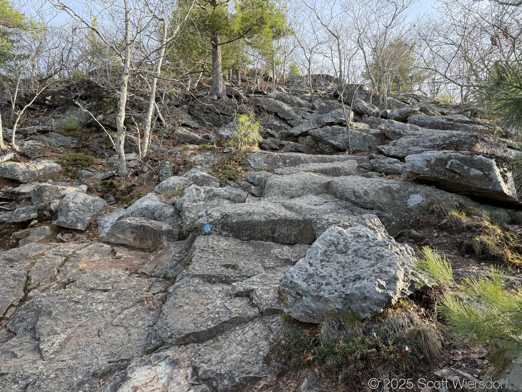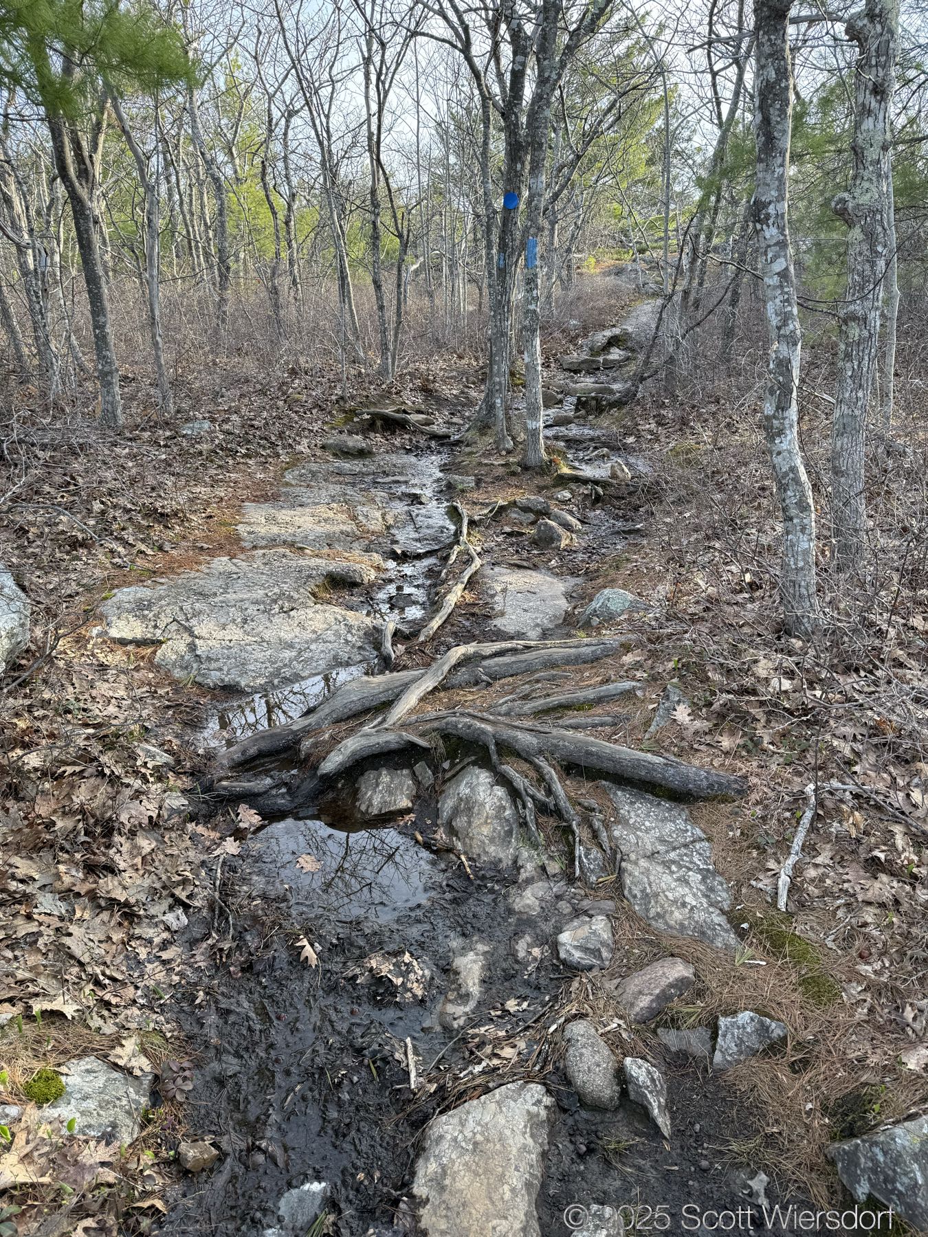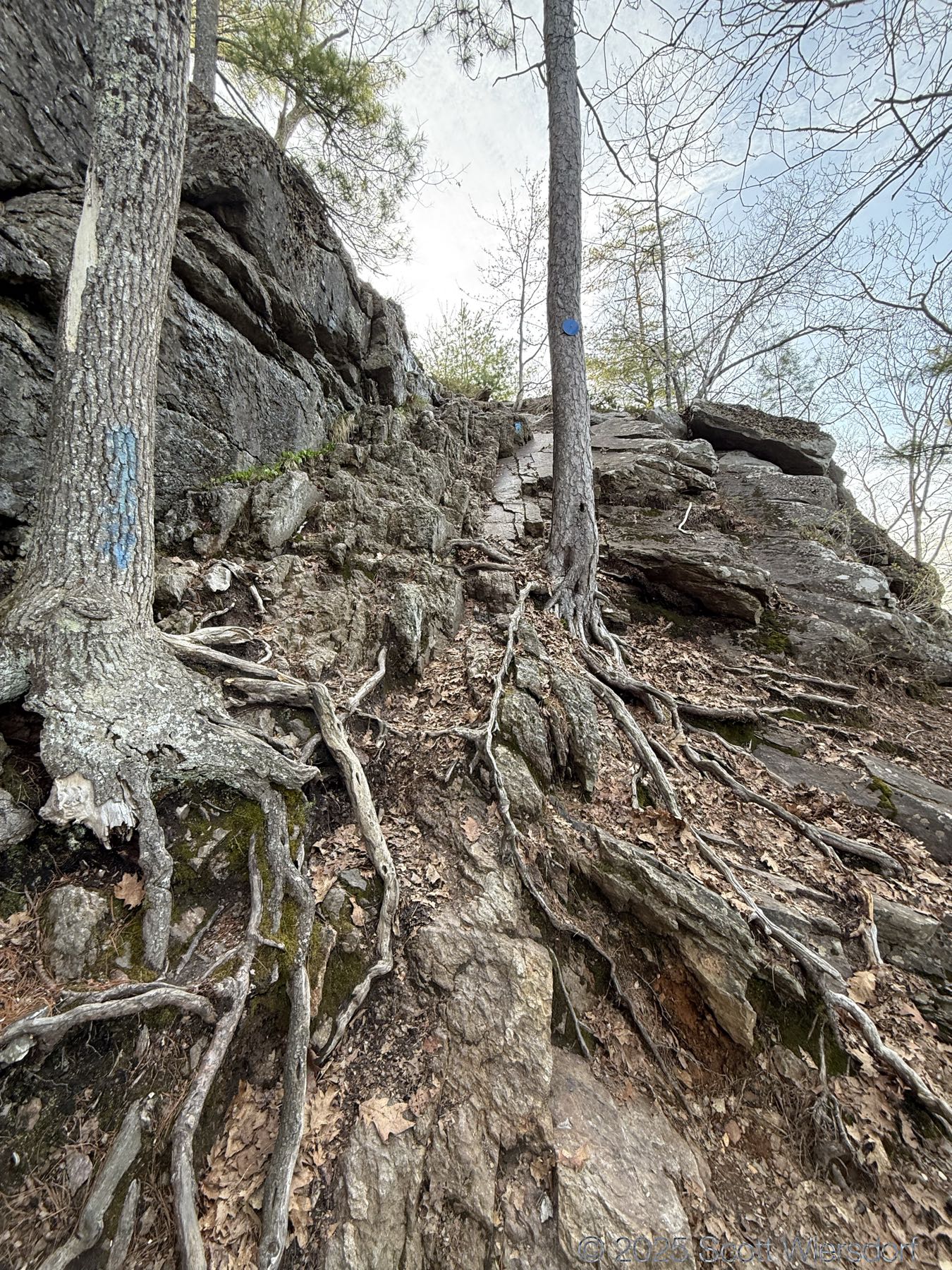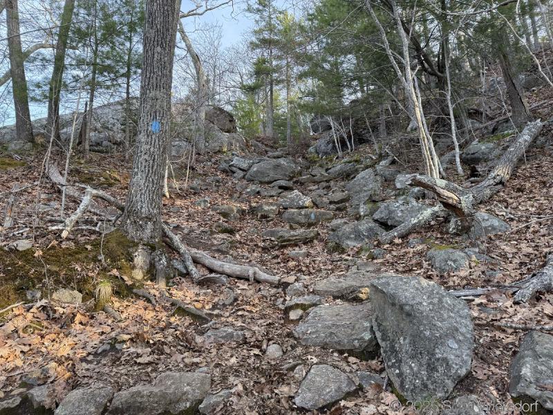 The trail was marked in blue tree tags and blue paint on the rocks and trees.