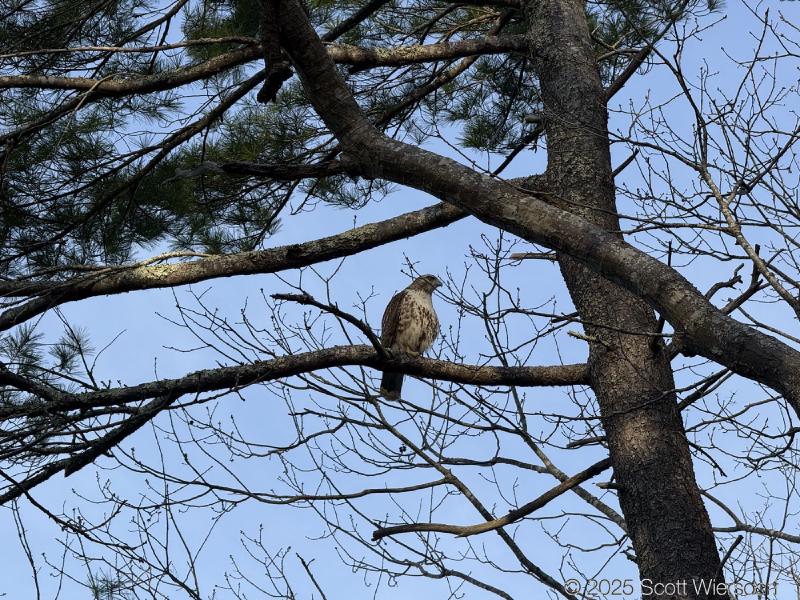 I startled this hawk who left his perch as I came up, then quickly went back to it as I walked under.