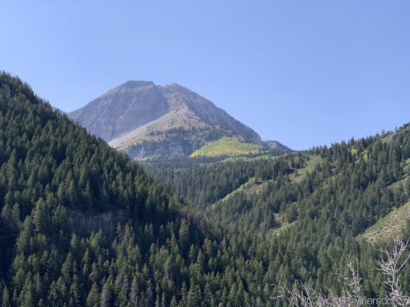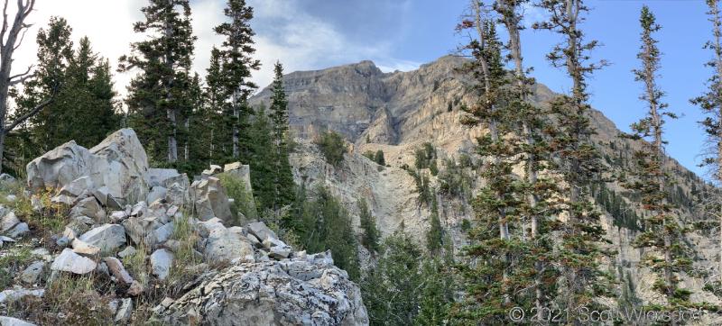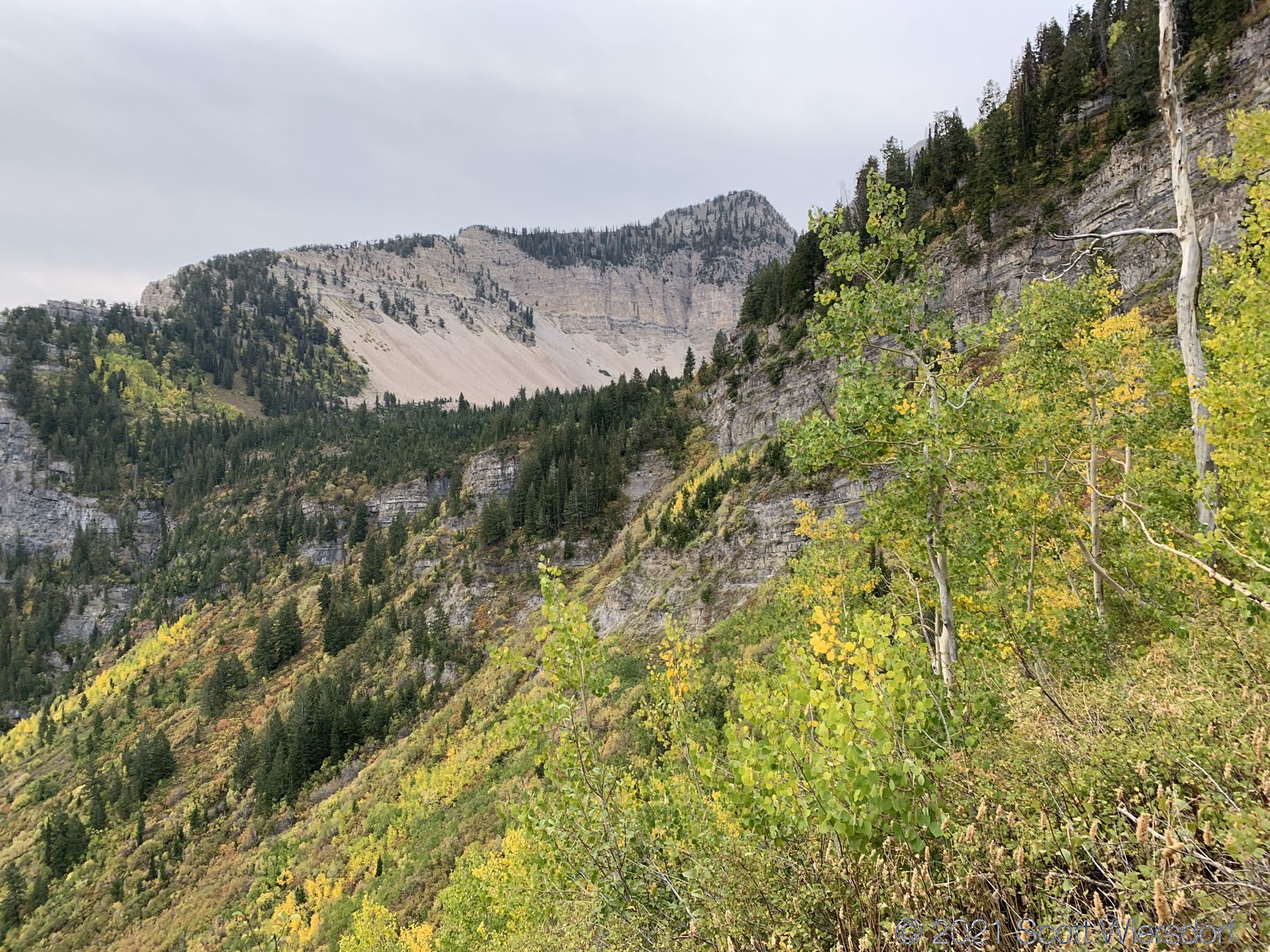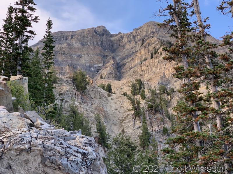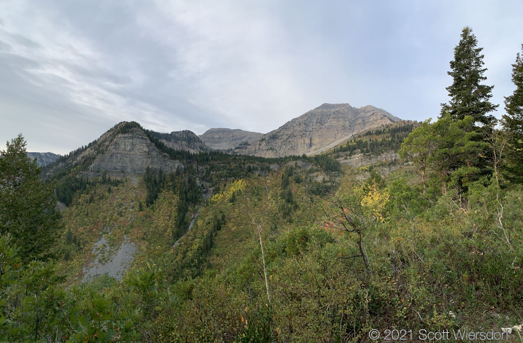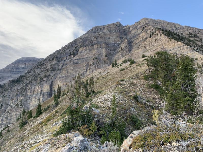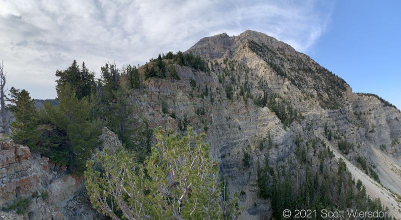 As you continue southwest up the ridge, you’ll get into some conifers and breathtaking views of North Timpanogos looking west: