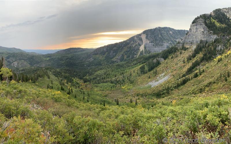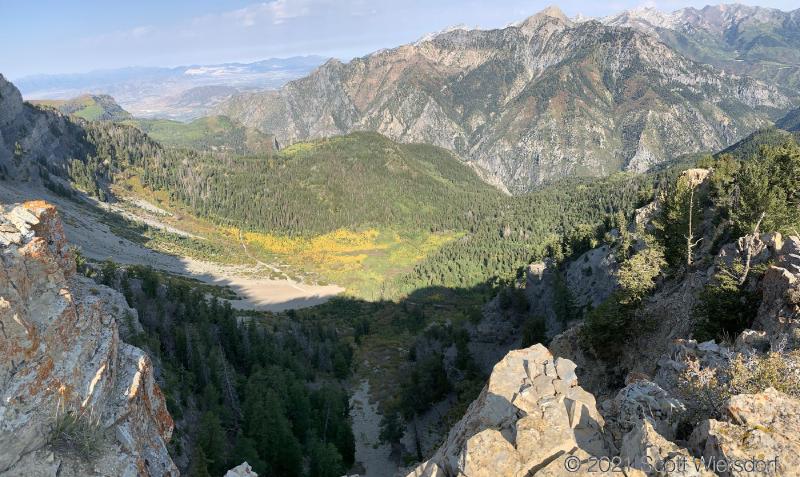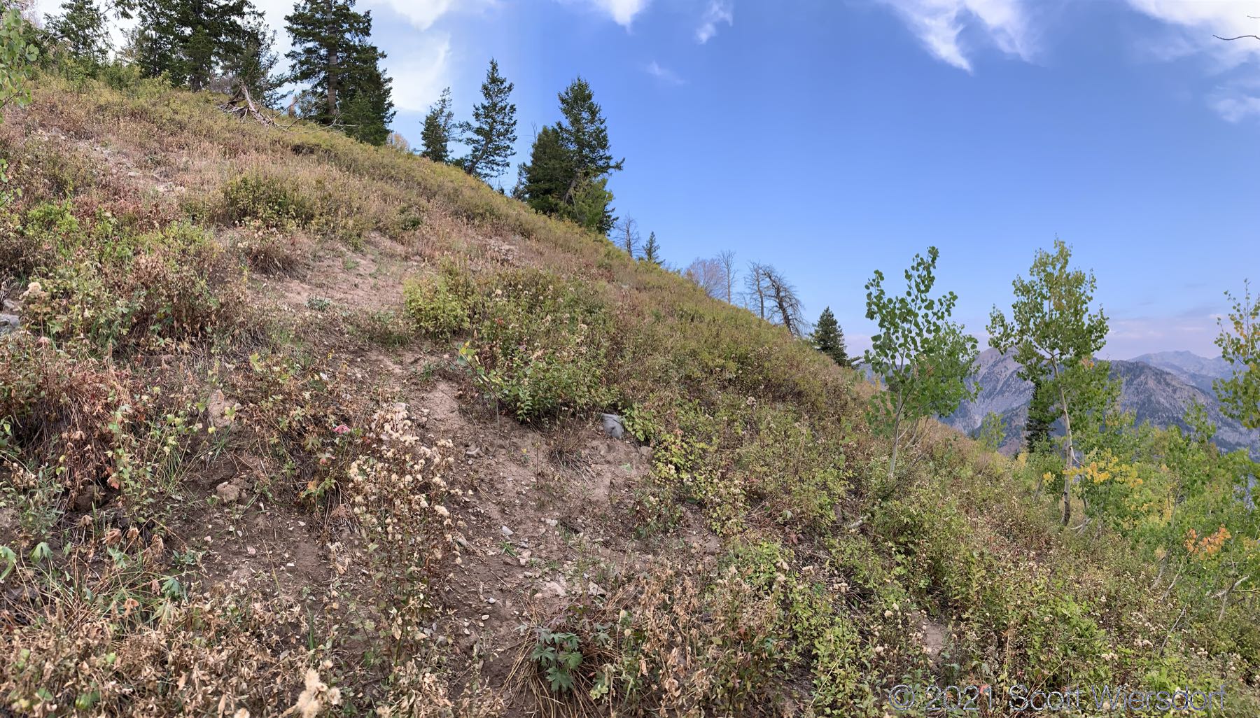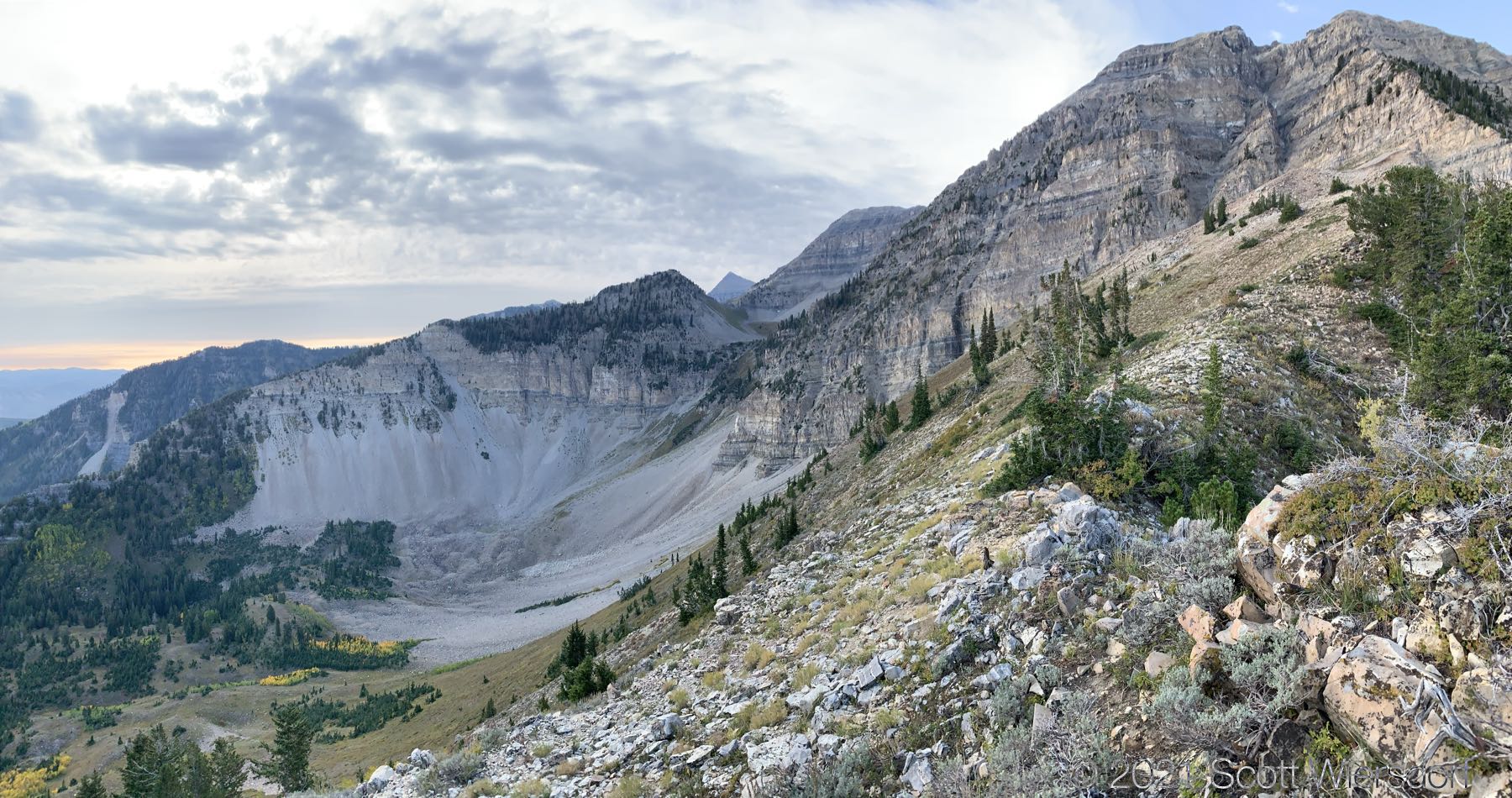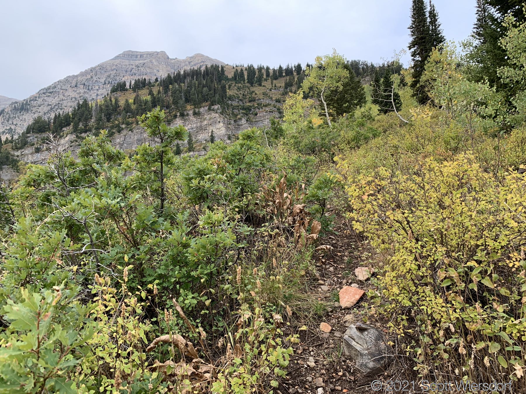 As you continue southwest up the ridge, you’ll get into some conifers and breathtaking views of North Timpanogos looking west: