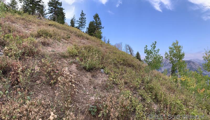 Once you get to where the ridge bends southwest the trail disappears completely:
