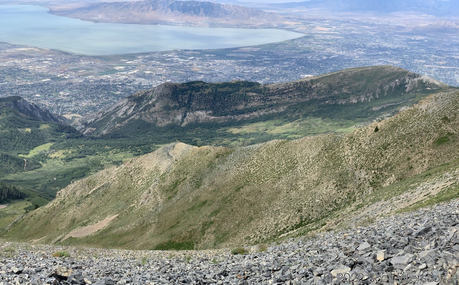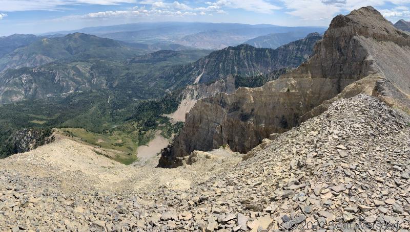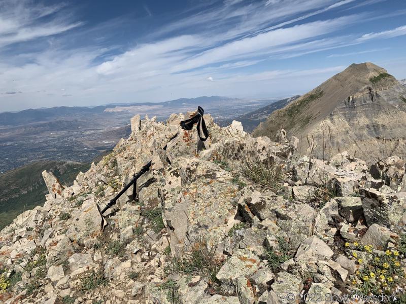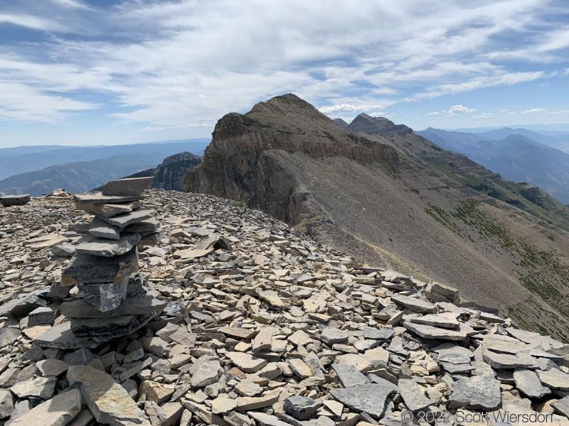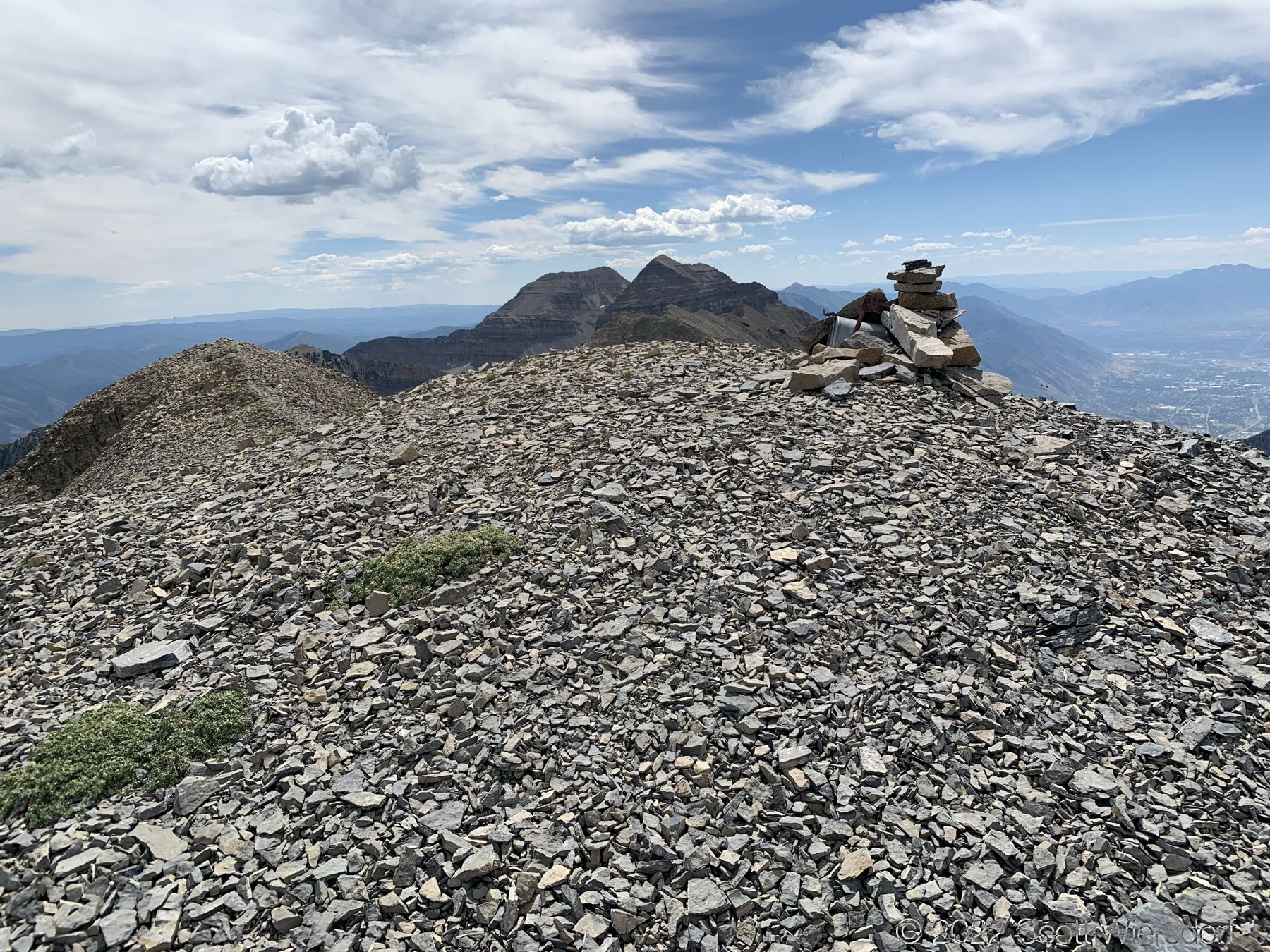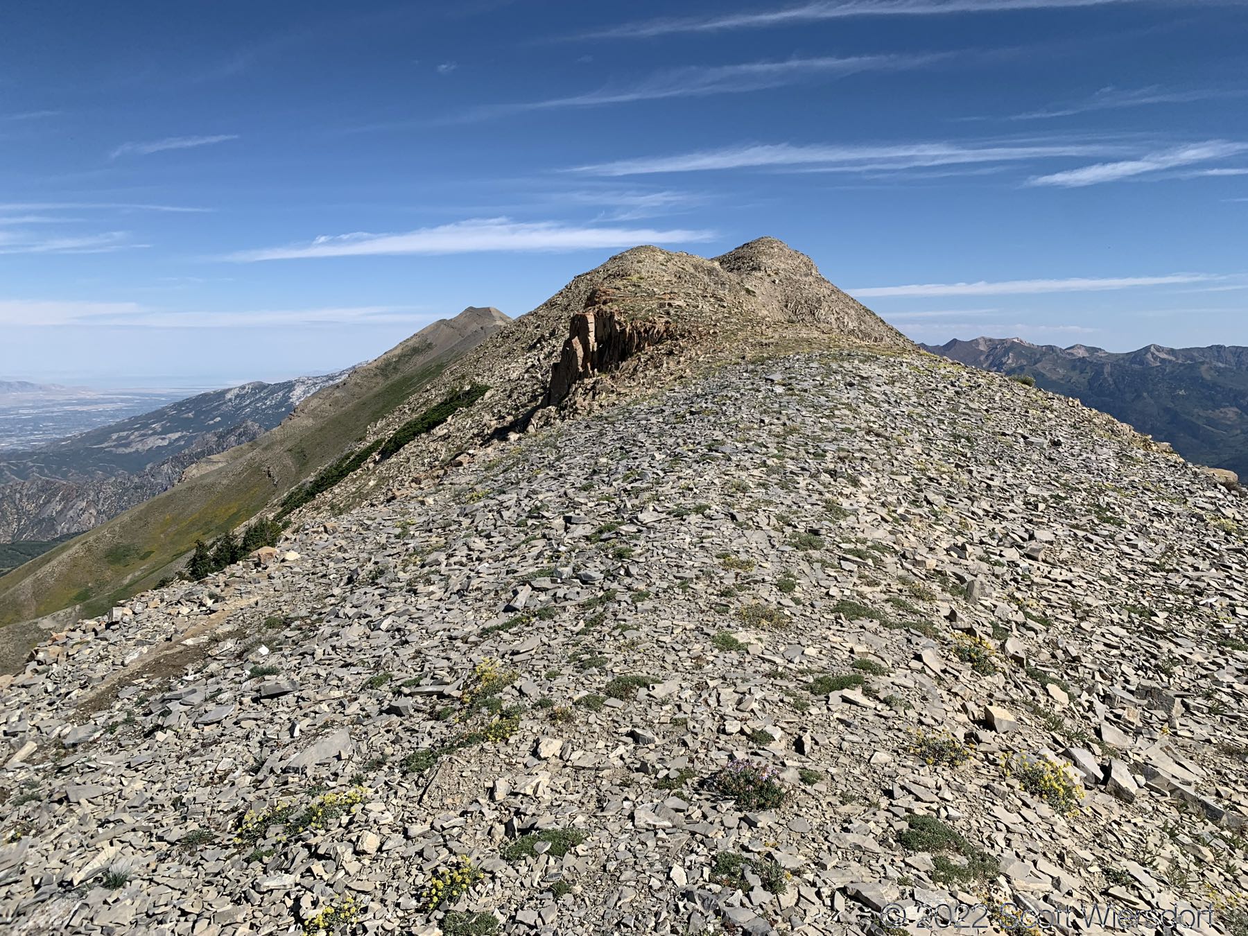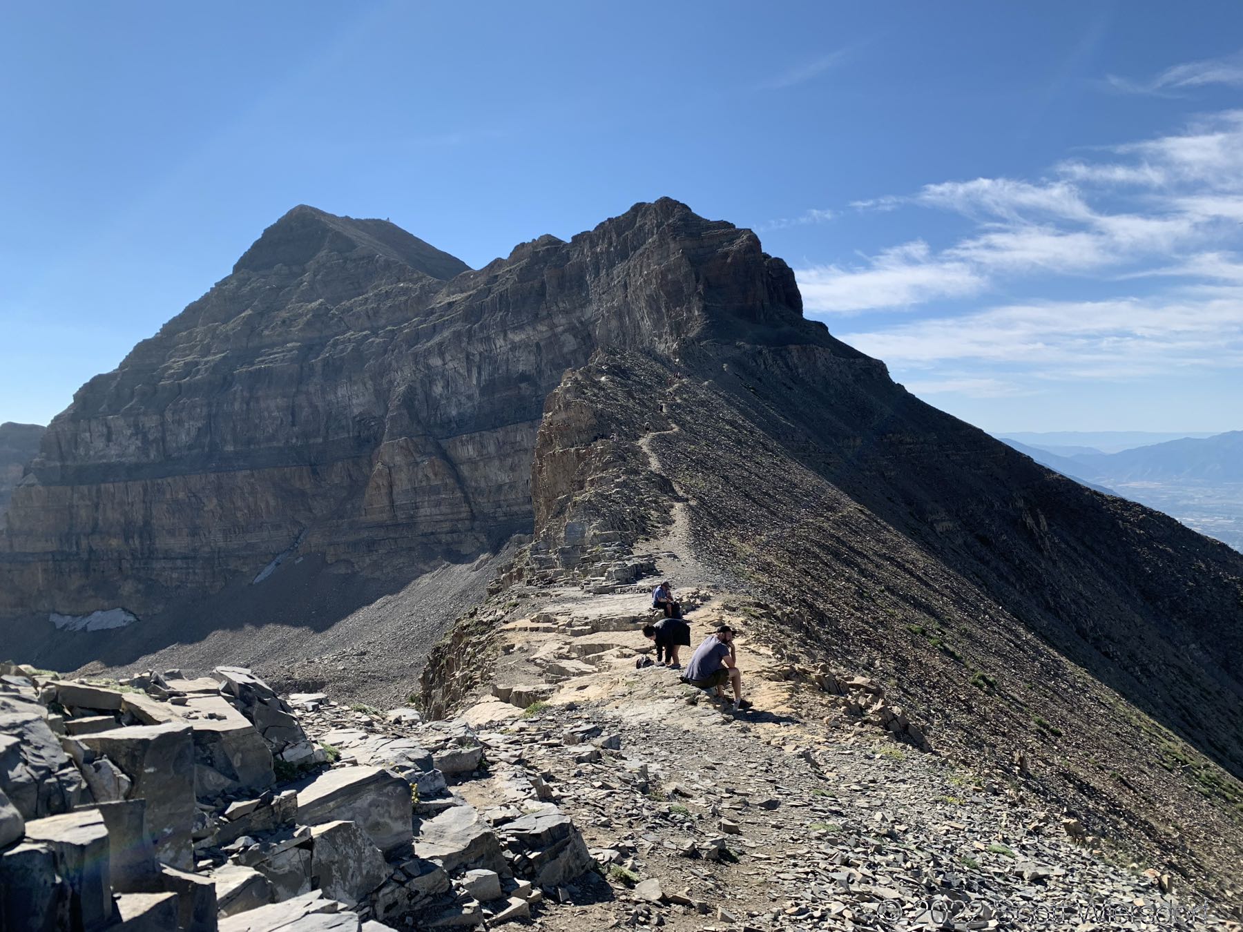 The ridge is unfriendly once you’re past Bomber Peak. No real trail. No dangers either, but it’s not an easy walk. In the final push to the North Timpanogos summit, you lose over 600 feet of elevation which you have to make up again in .3 miles, making most of the final pitch over 45° in some spots.