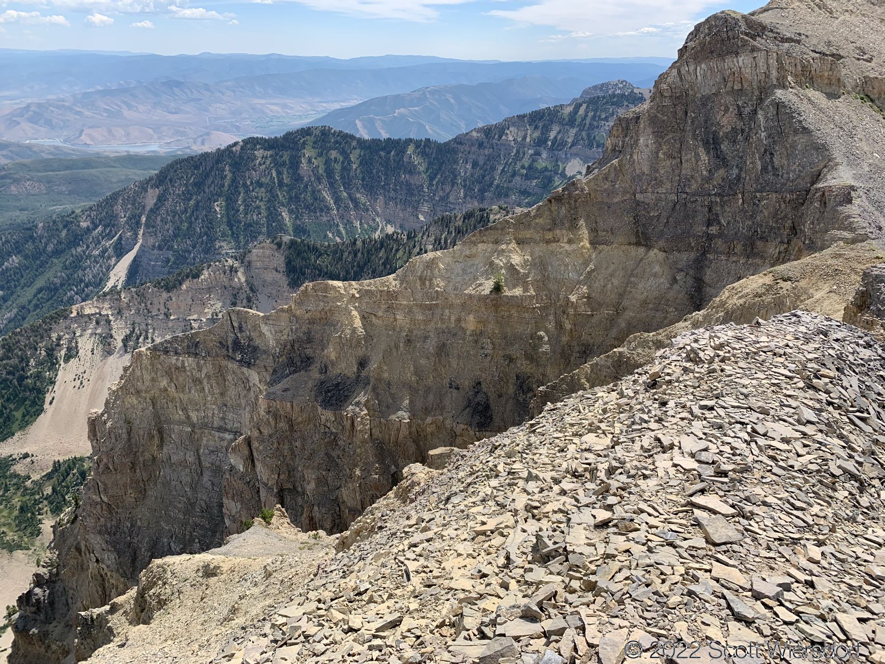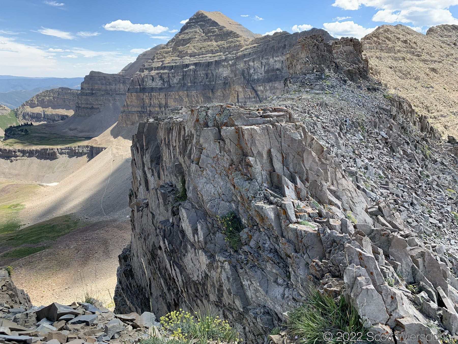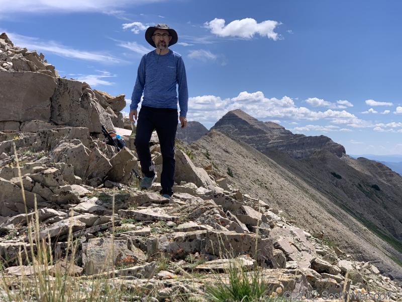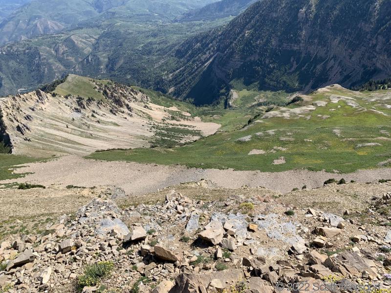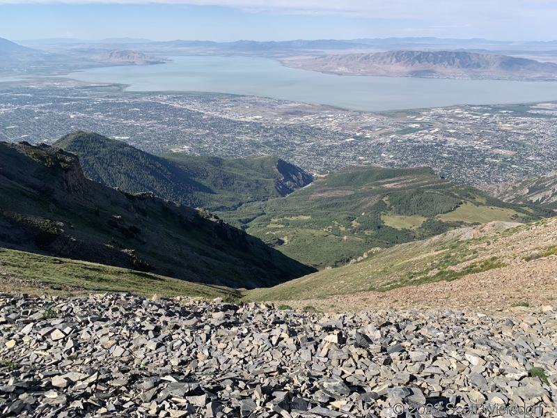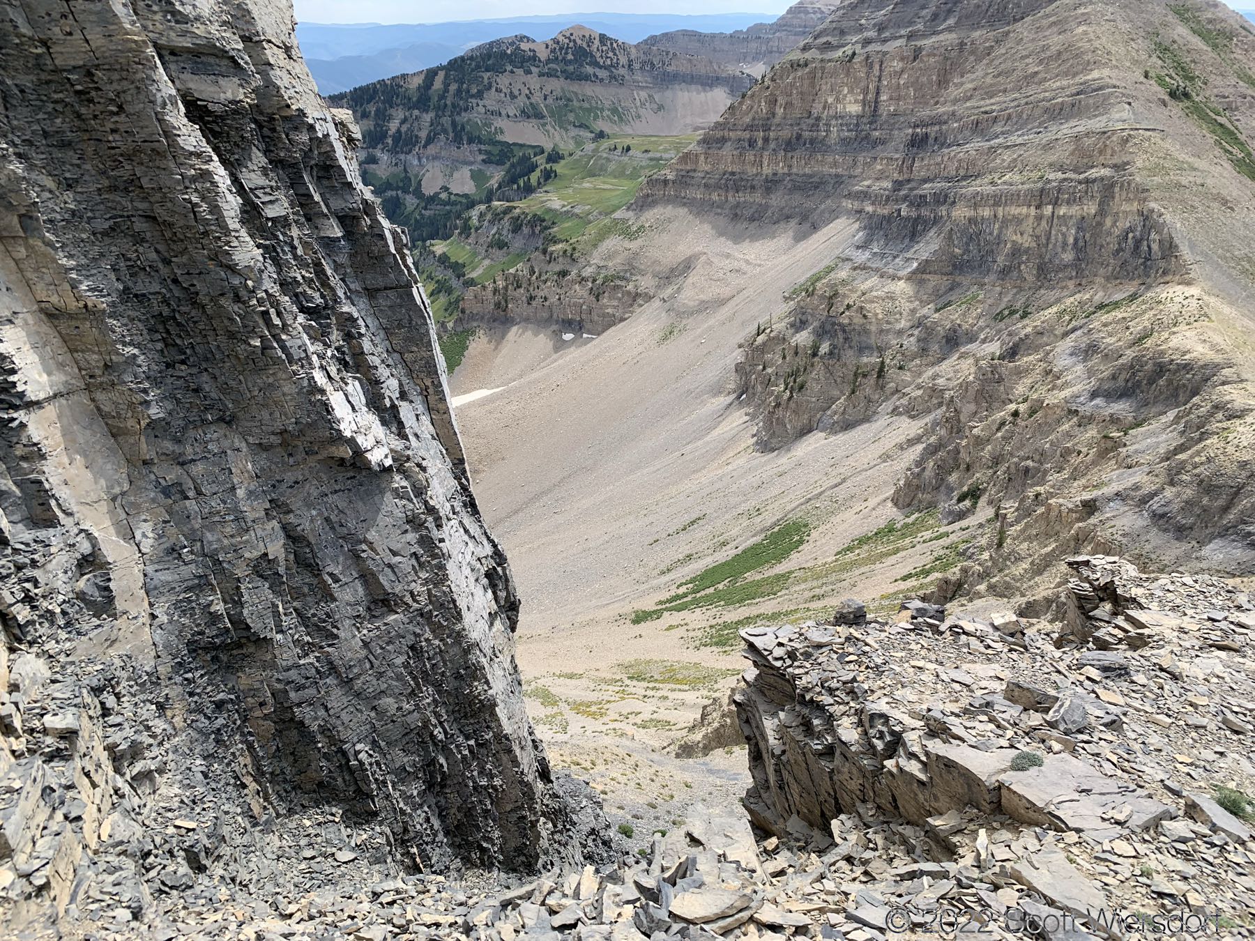 The ridge is unfriendly once you’re past Bomber Peak. No real trail. No dangers either, but it’s not an easy walk. In the final push to the North Timpanogos summit, you lose over 600 feet of elevation which you have to make up again in .3 miles, making most of the final pitch over 45° in some spots.