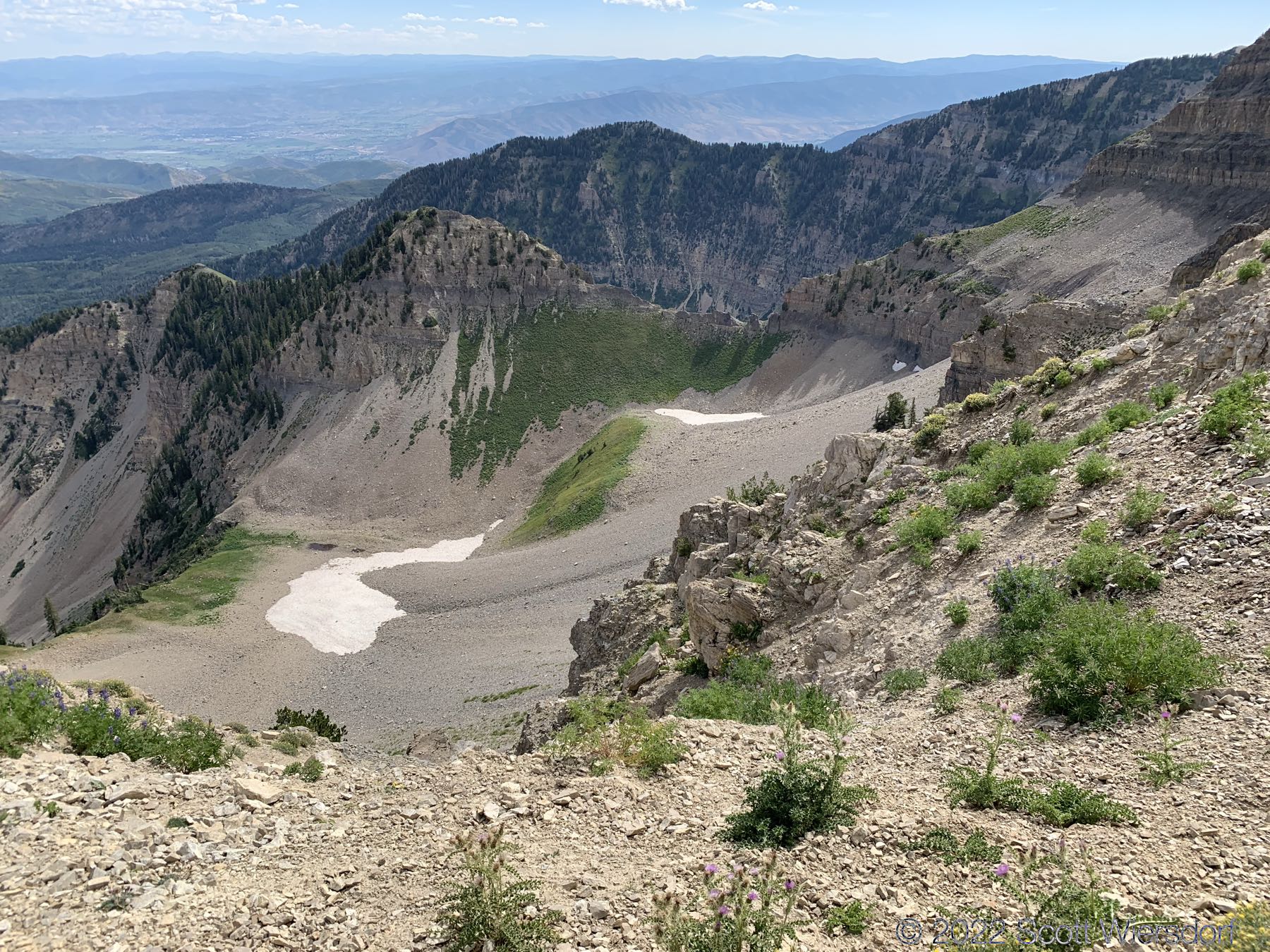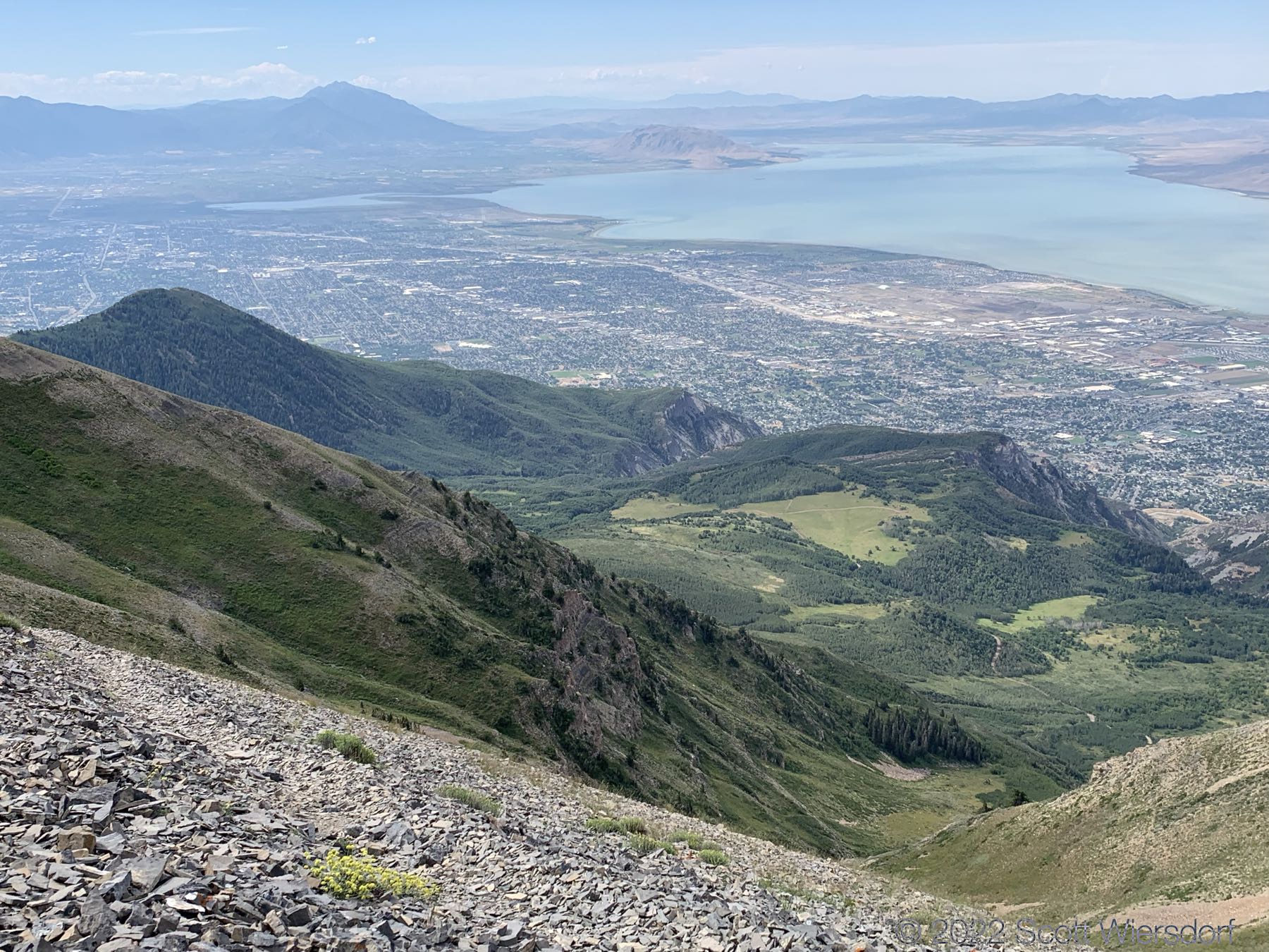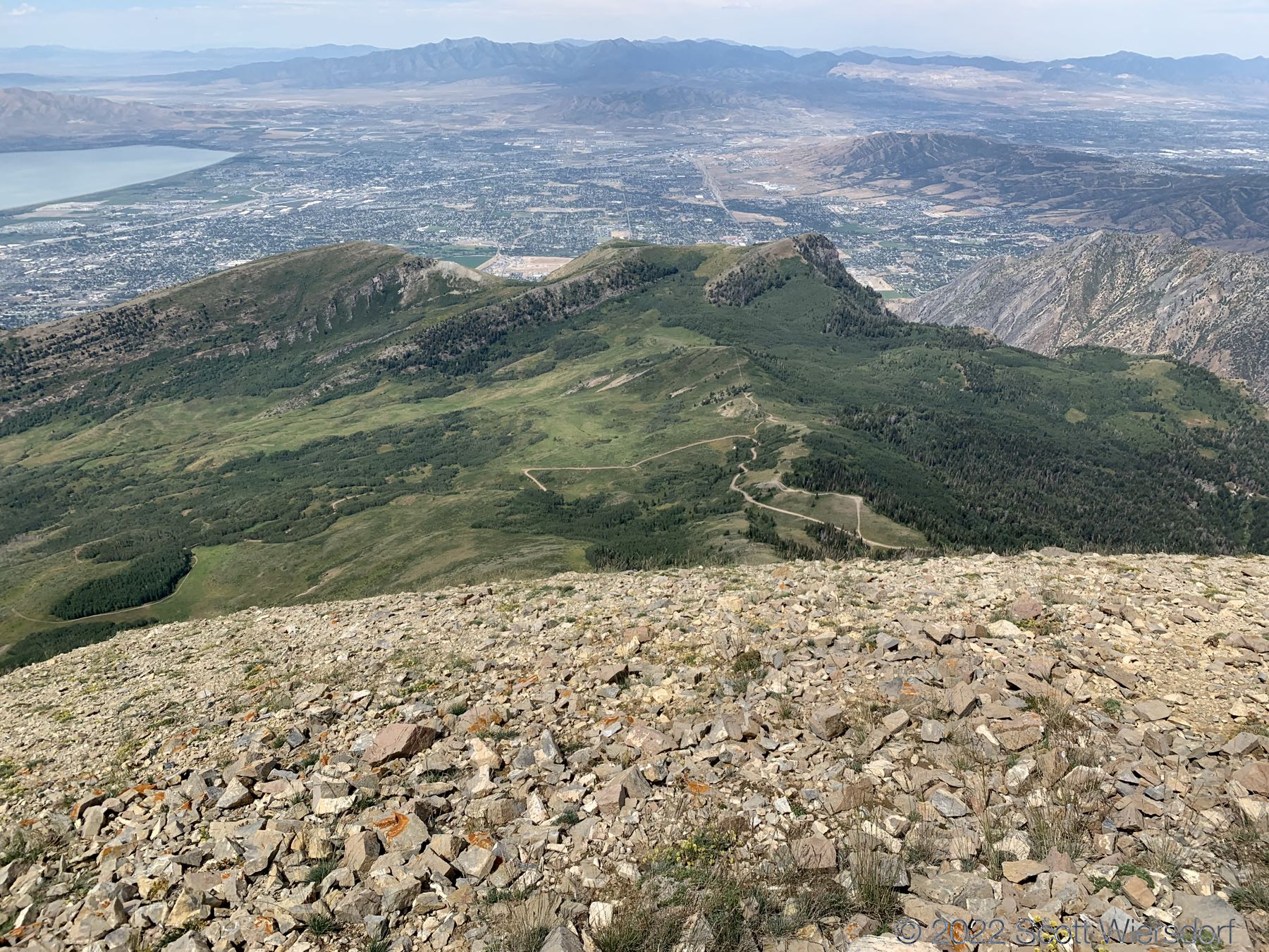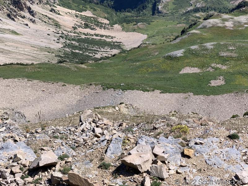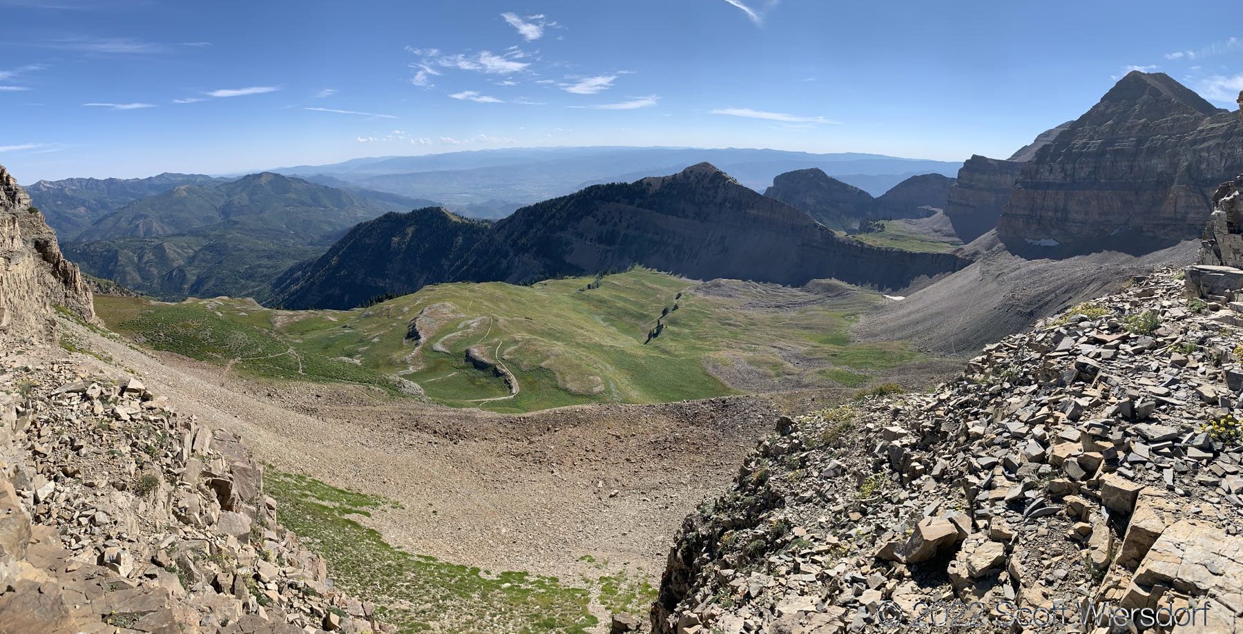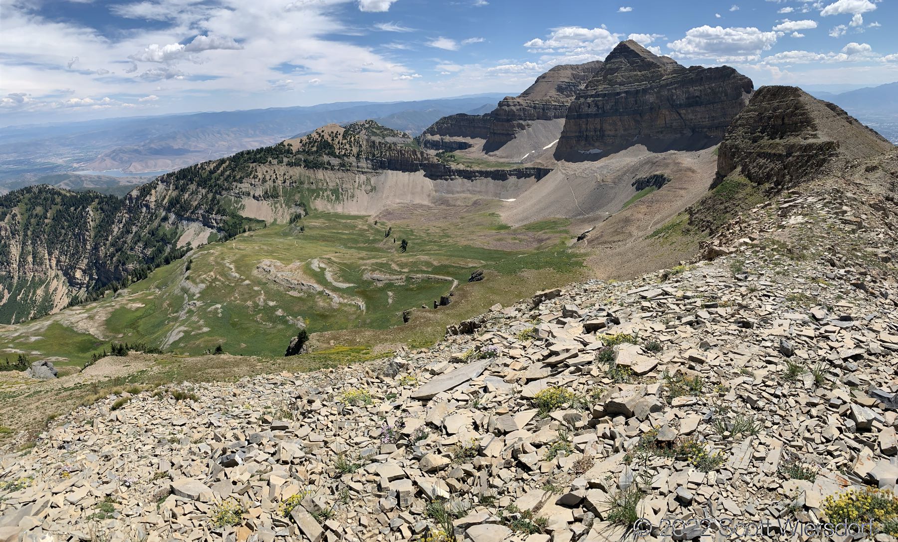 The ridge is unfriendly once you’re past Bomber Peak. No real trail. No dangers either, but it’s not an easy walk. In the final push to the North Timpanogos summit, you lose over 600 feet of elevation which you have to make up again in .3 miles, making most of the final pitch over 45° in some spots.