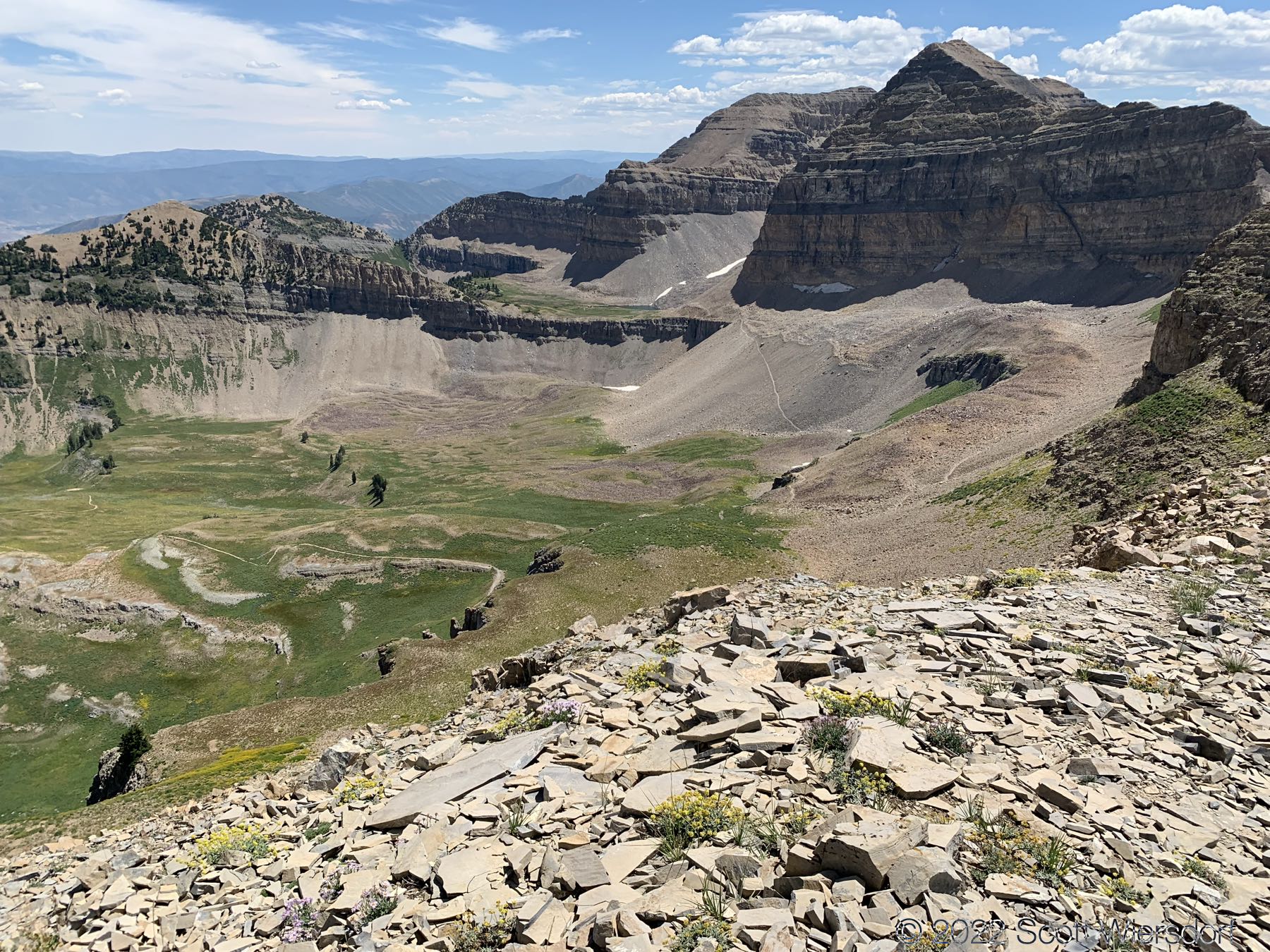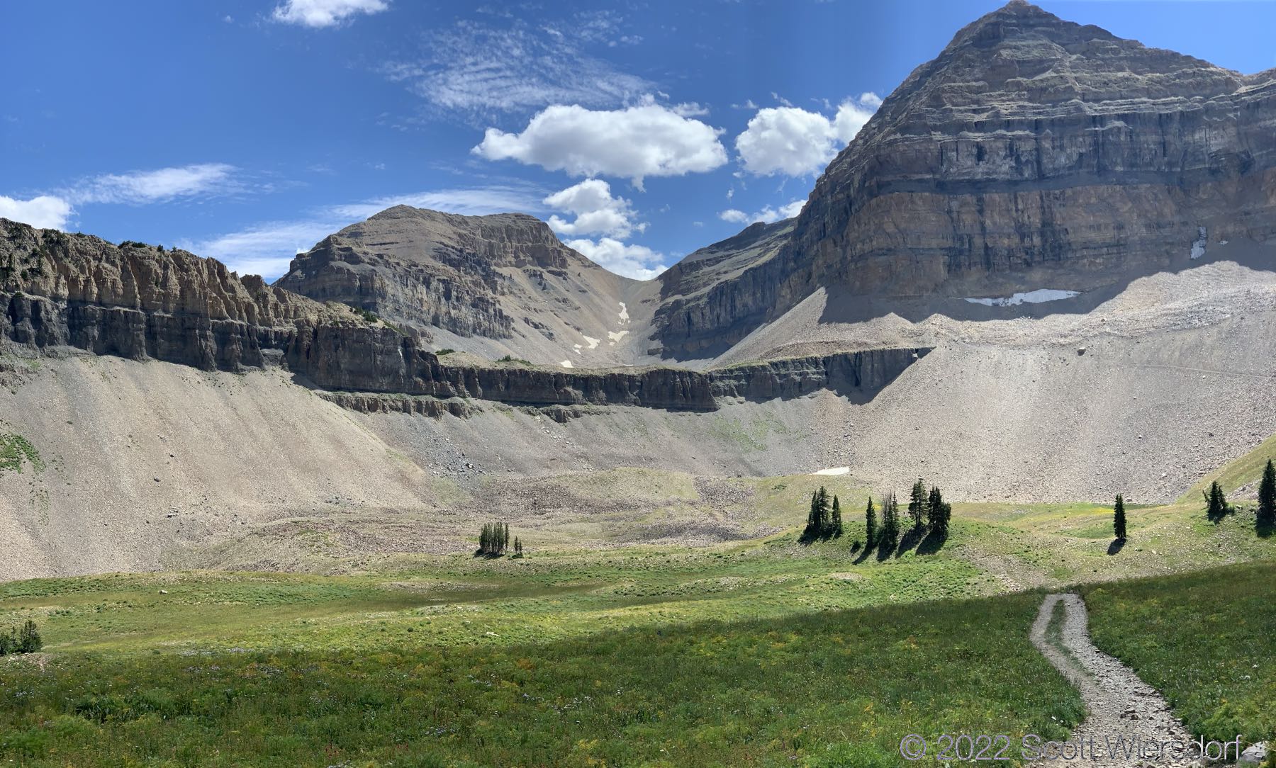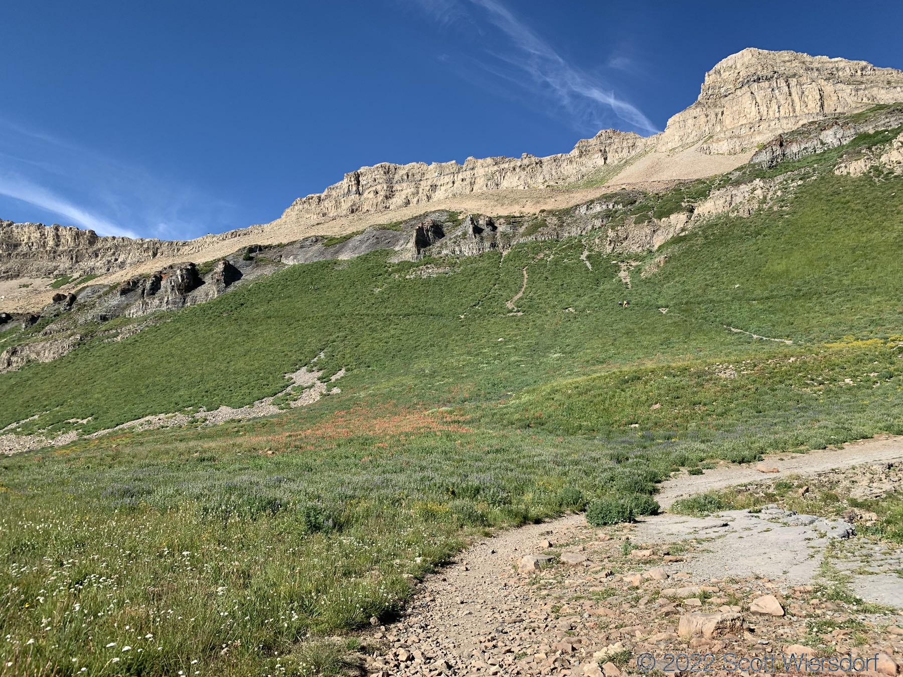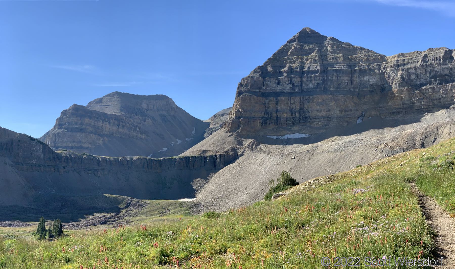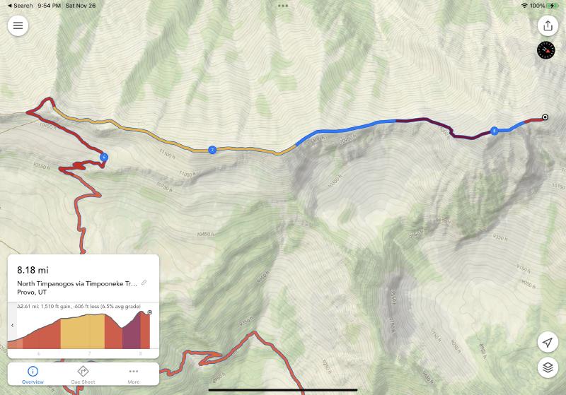 The ridge is unfriendly once you’re past Bomber Peak. No real trail. No dangers either, but it’s not an easy walk. In the final push to the North Timpanogos summit, you lose over 600 feet of elevation which you have to make up again in .3 miles, making most of the final pitch over 45° in some spots.