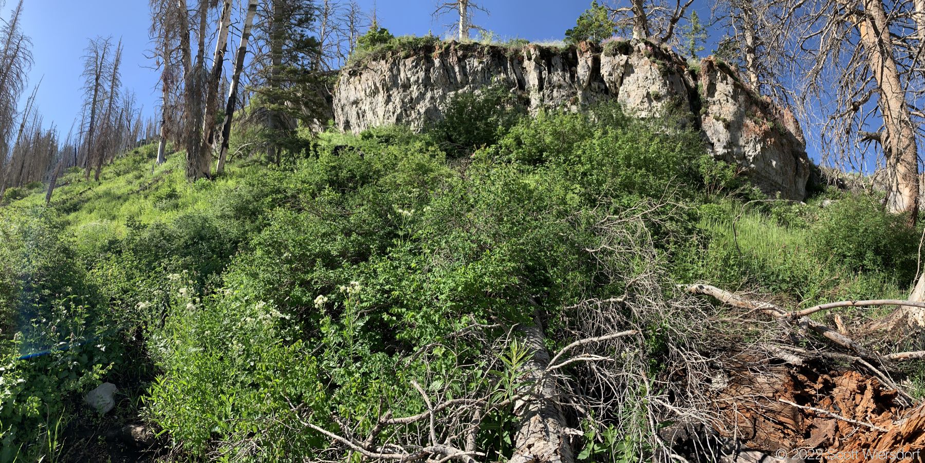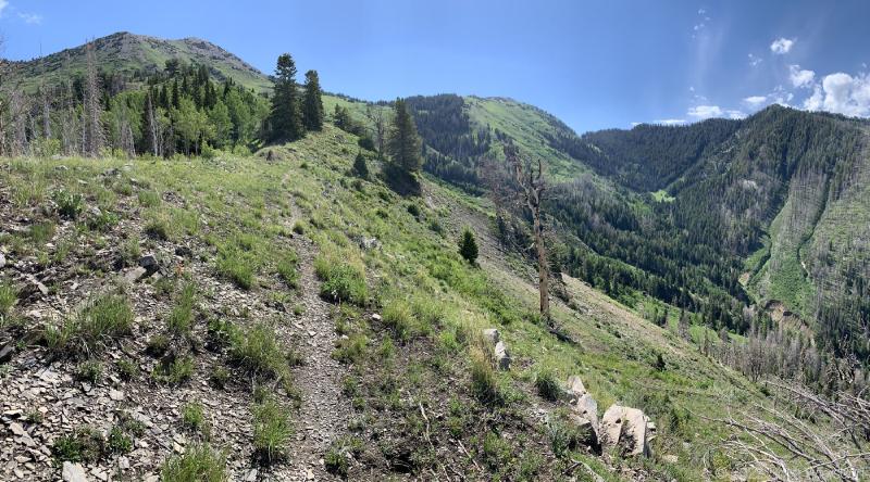 A panorama of the lost trail. Fortunately there was a lot of wildflowers and bees to keep me company.