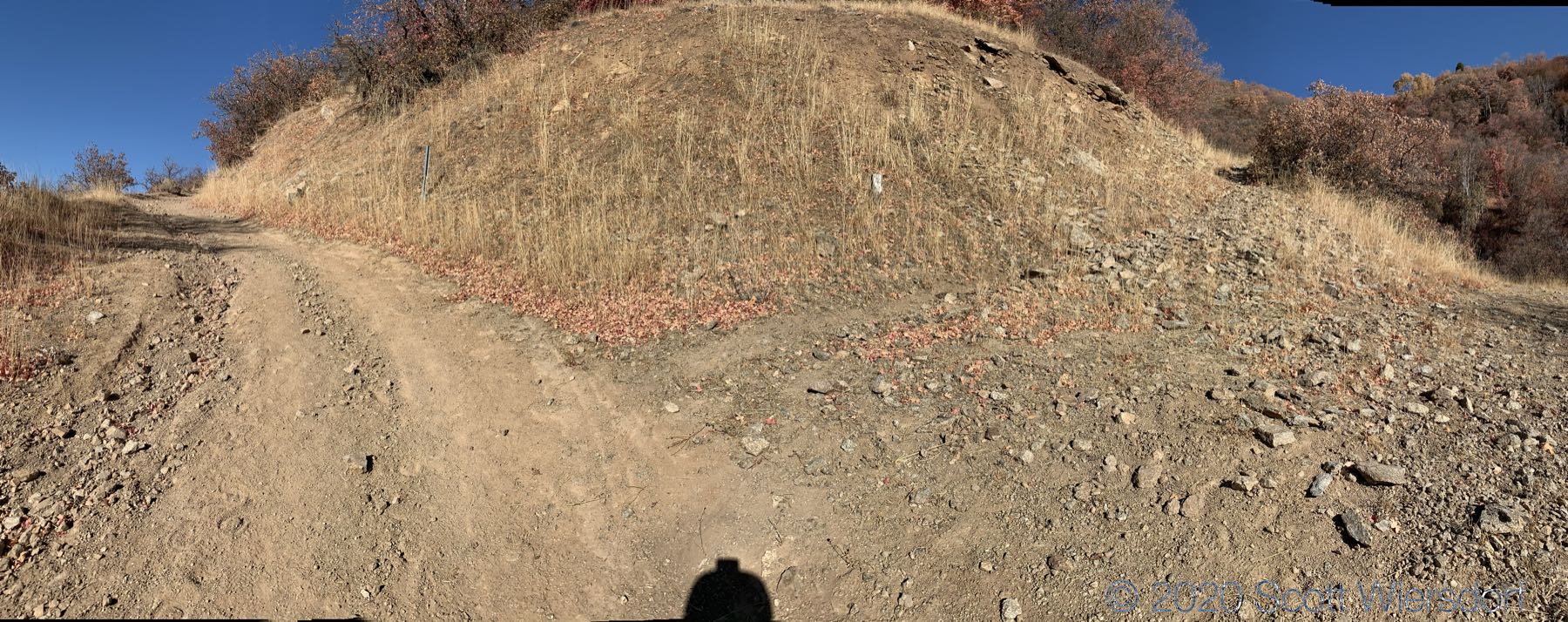 The trail shortcut starts out fine, but a good portion of it is 30–40% grades and follows a water pipeline: