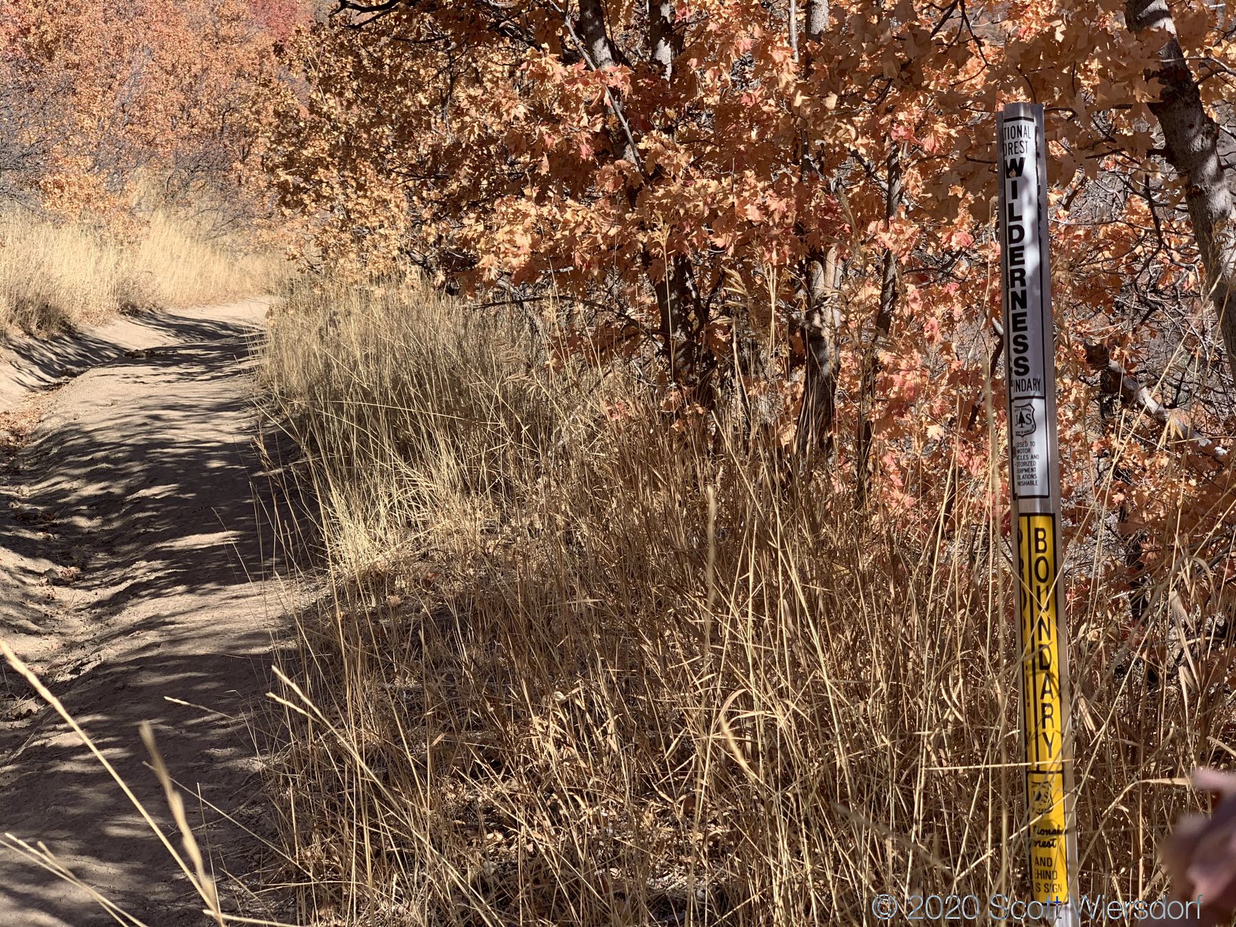 Just past this Wilderness Area sign the trail crosses over a stream. I was hiking in early November after a particularly dry summer, but there was still water running.