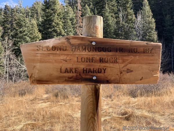The trail to Lake Hardy doesn’t show up on any of my maps, so I followed it for about .35 miles to see whether it’s a direct route to Lake Hardy or joins the main Lake Hardy trail that forked off near the First Hamongog. I think it goes straight to the lake, which would have added another 2.5 miles or so to my route (and some rather steep grades).