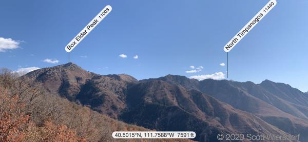 I made quick work of the trail coming back but stopped to take some photos of the soil conservation lines (lower left below the North Timpanogos label) below Box Elder Peak: