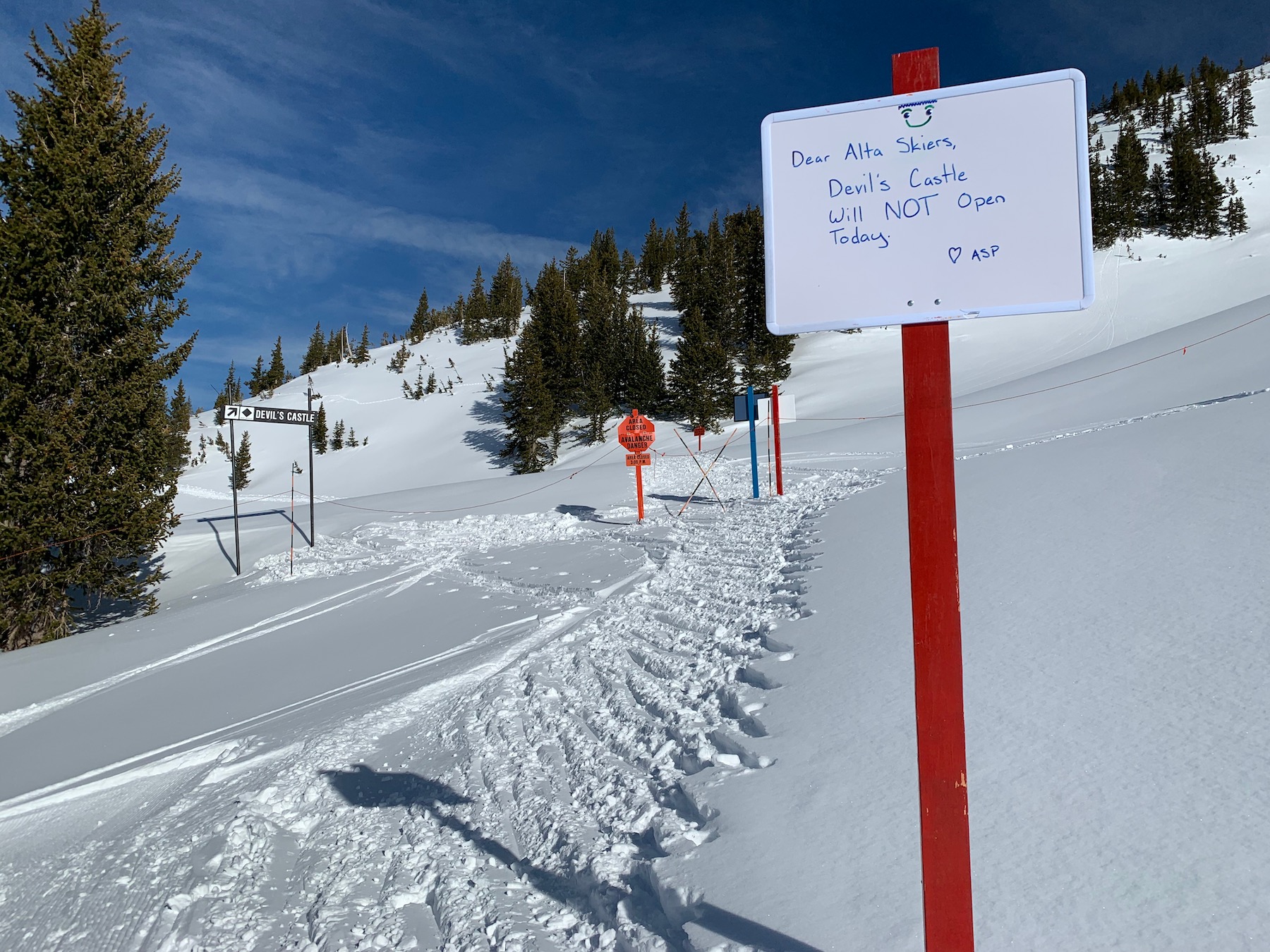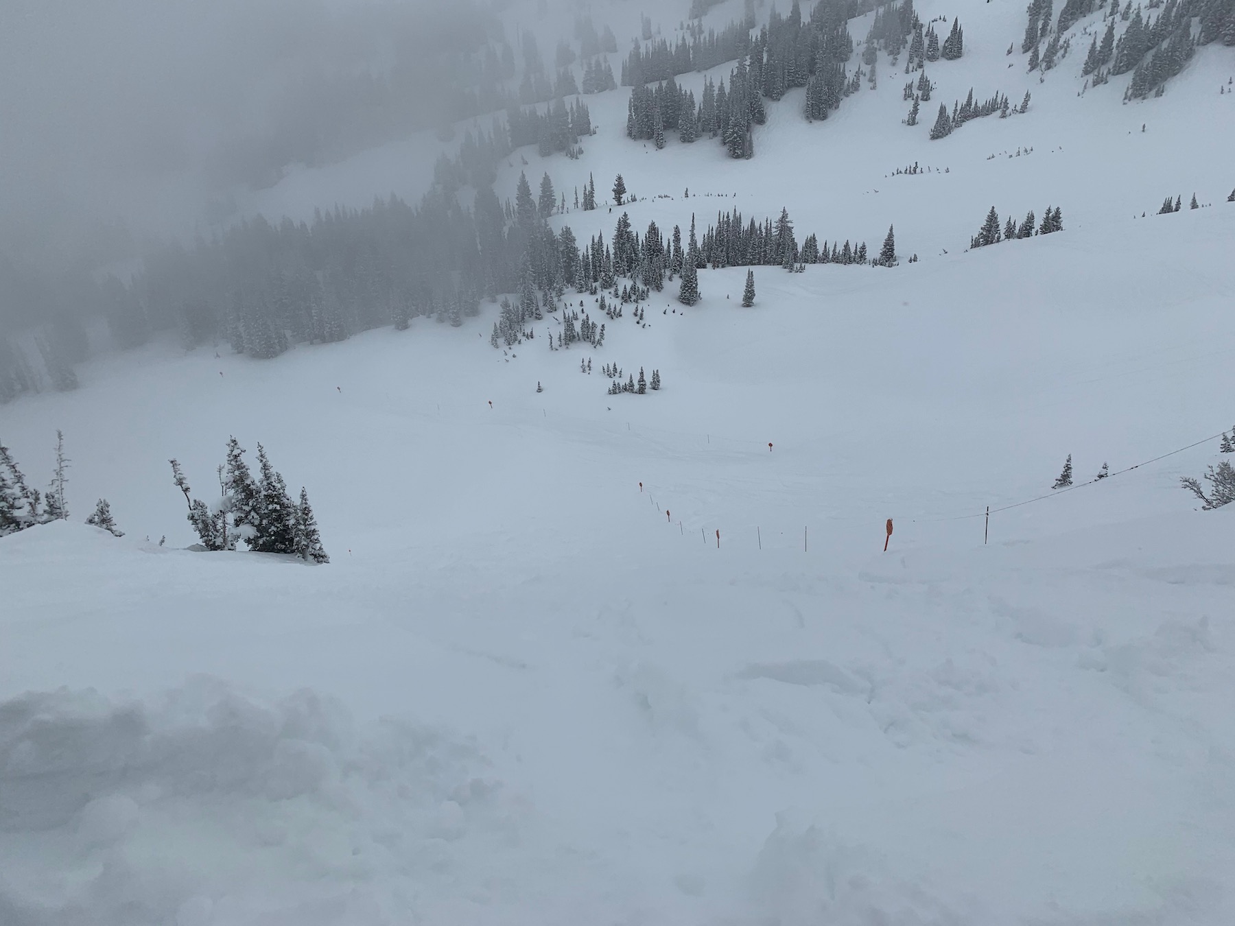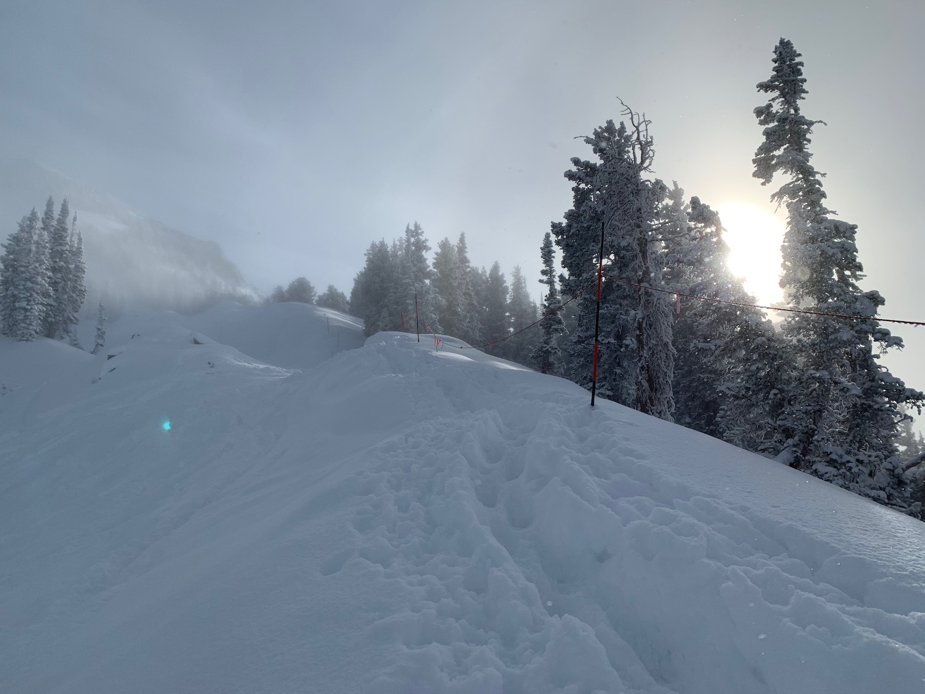 In the 10 or so minutes I waited, there were a couple of explosive detonations (I couldn’t tell if it was artillery or hand charges). A moment or so later I could hear a patroller notifying everyone of the areas that are now open, including Baldy Shoulder. The patroller untied the ropes and moved the pole and let everyone through.