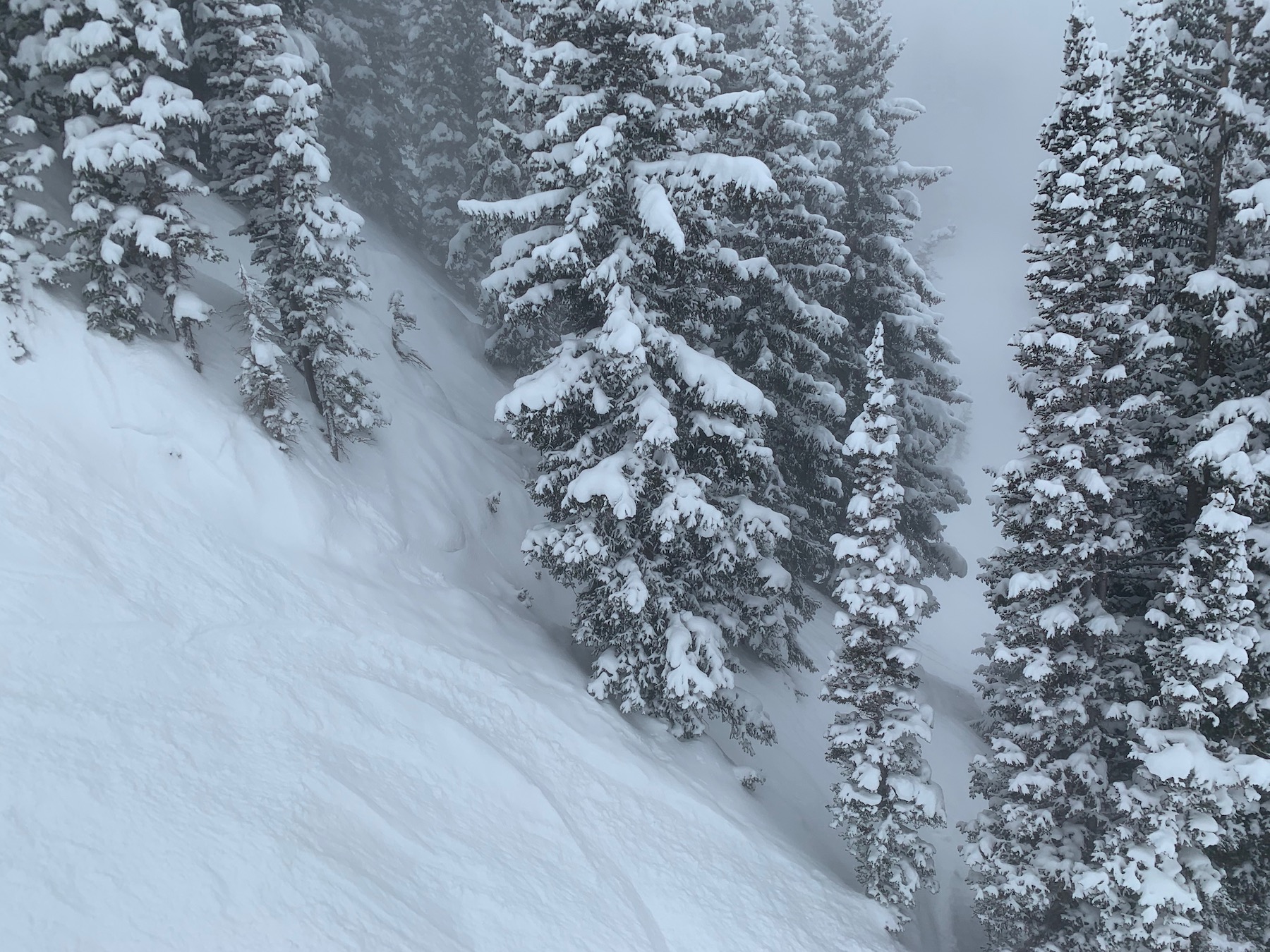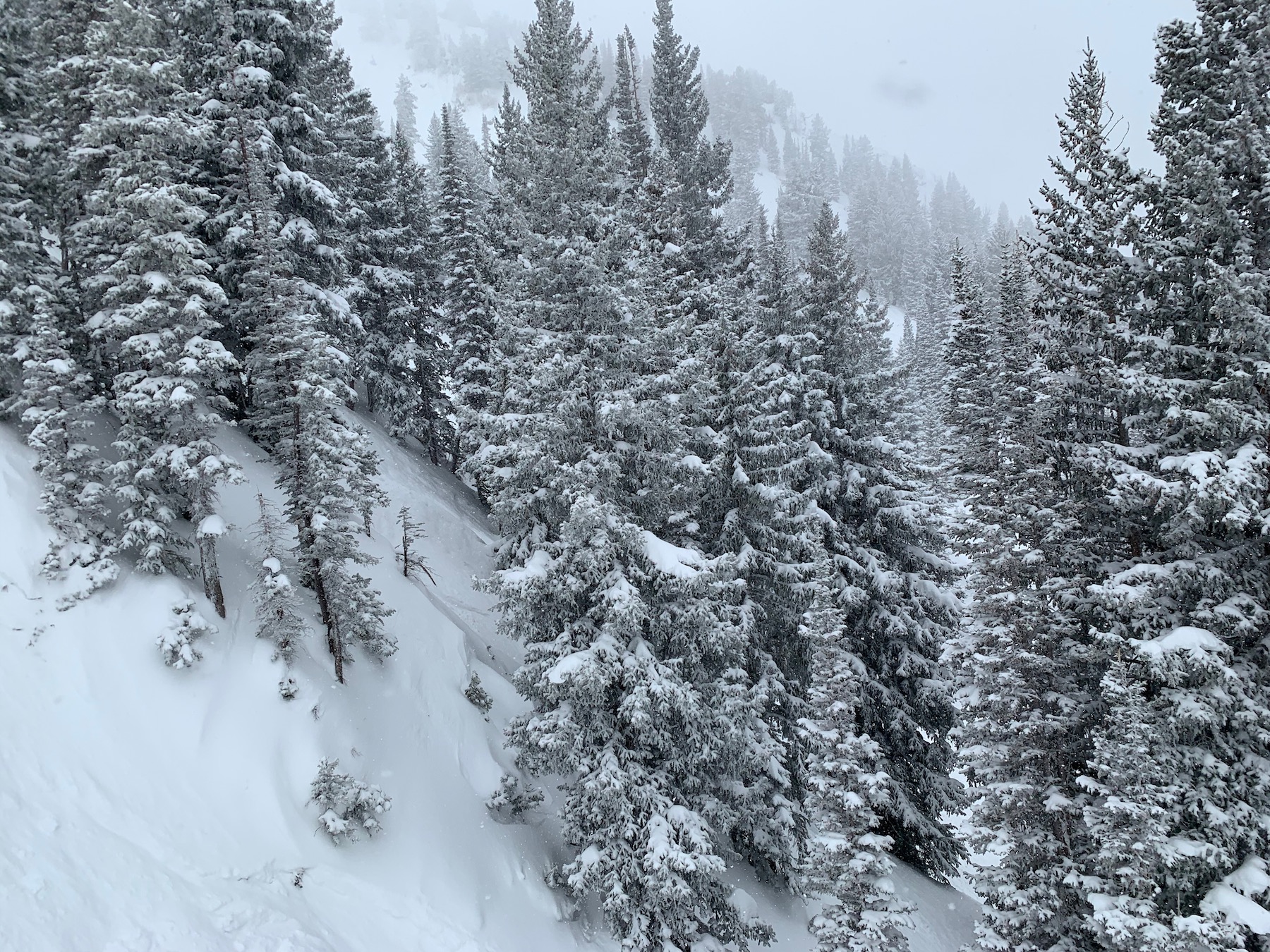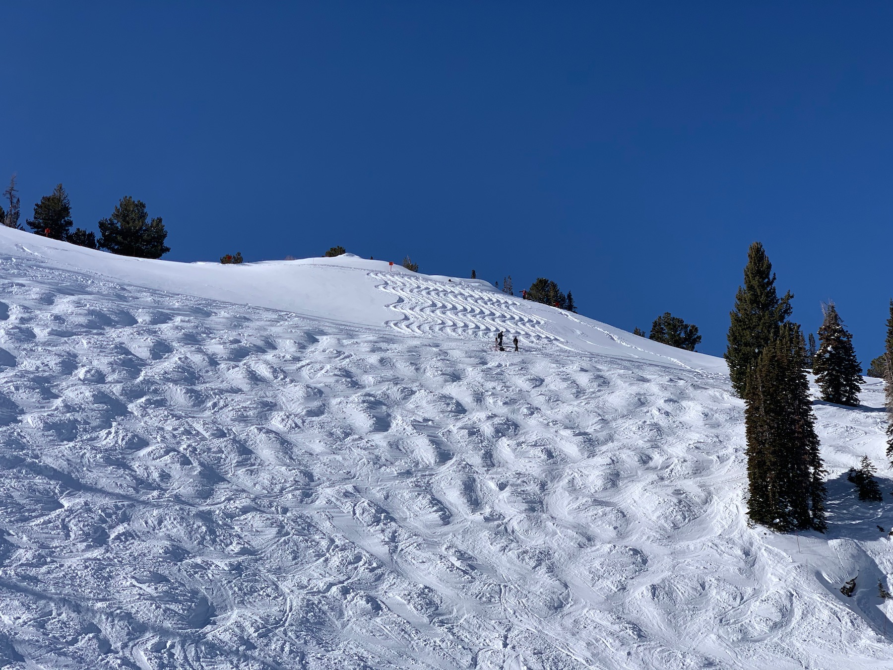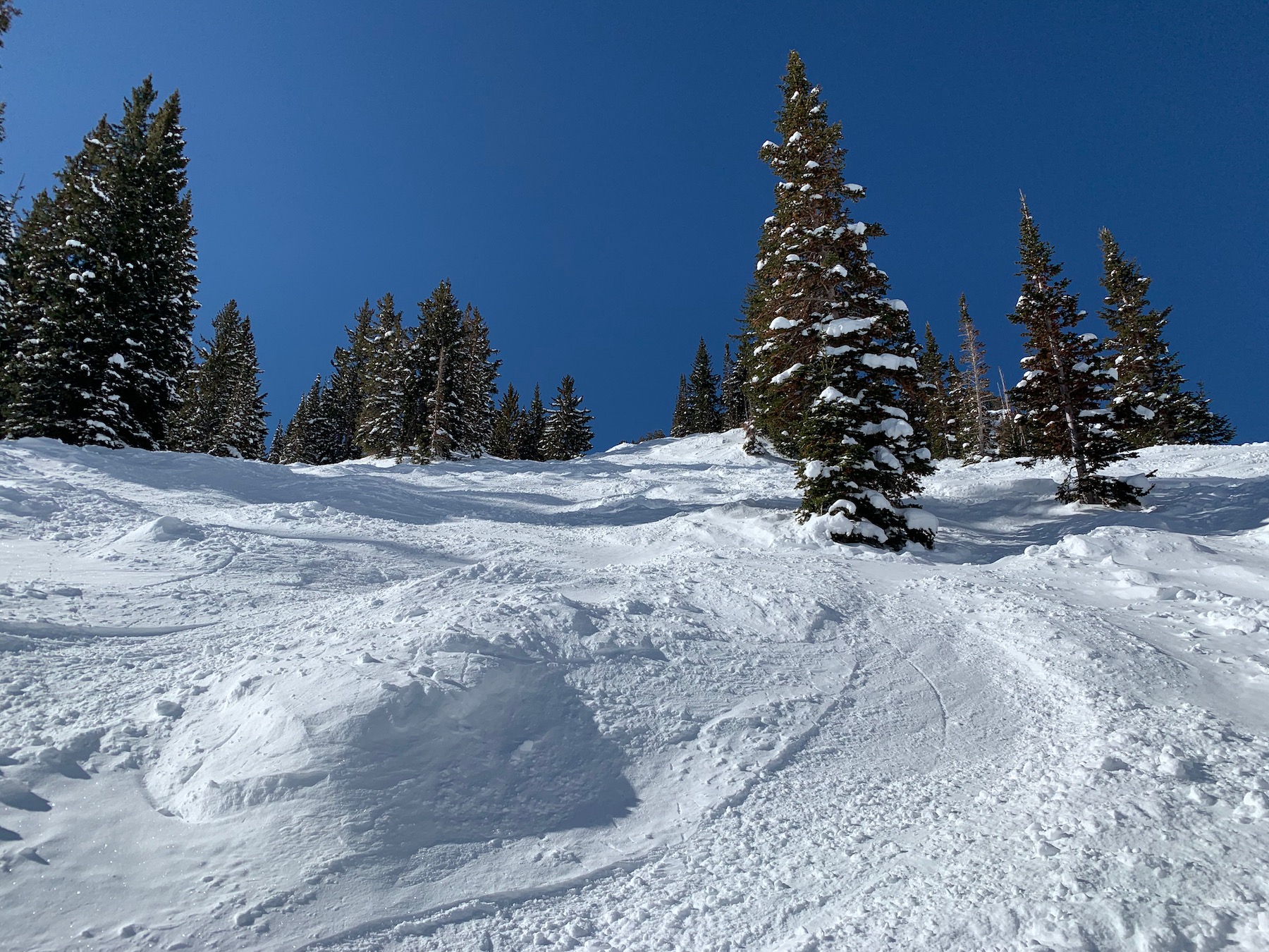 Still mostly on-piste, but now I’m over in Collins Gulch. Wildcat had enough cover to take Johnson’s Warm Up and Punch Bowl a few times. I also got some runs off Baldy Shoulder, which is always a good time.