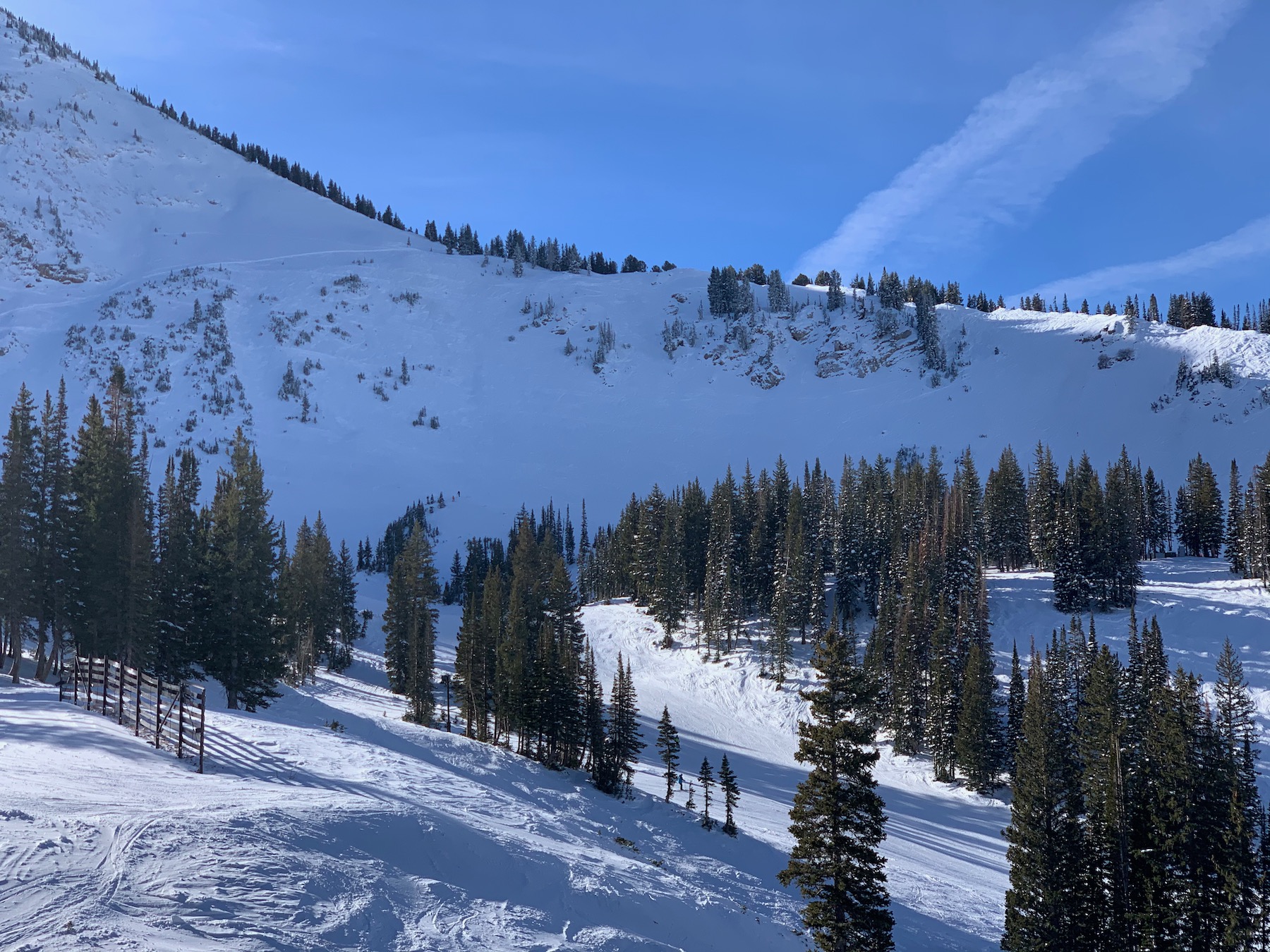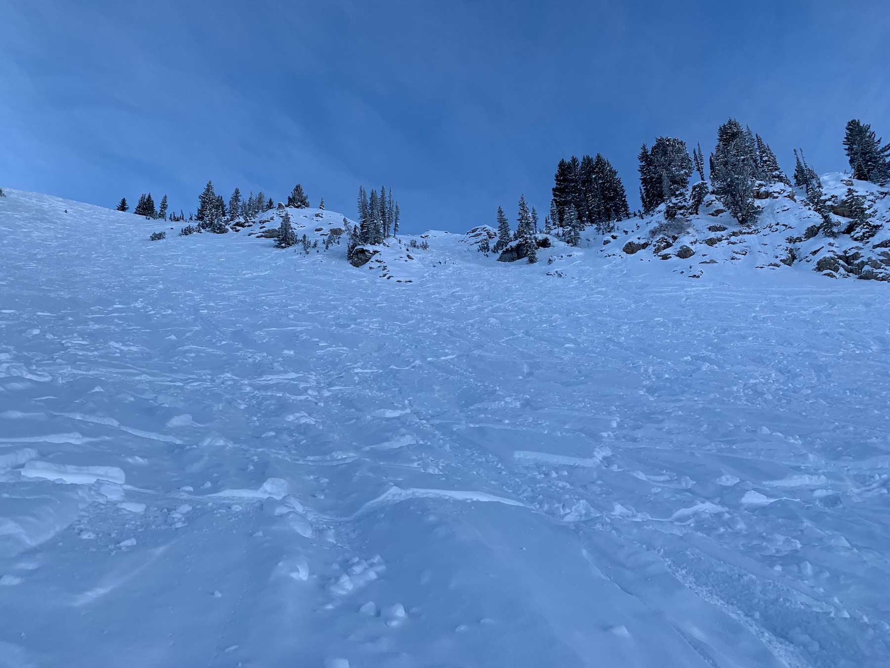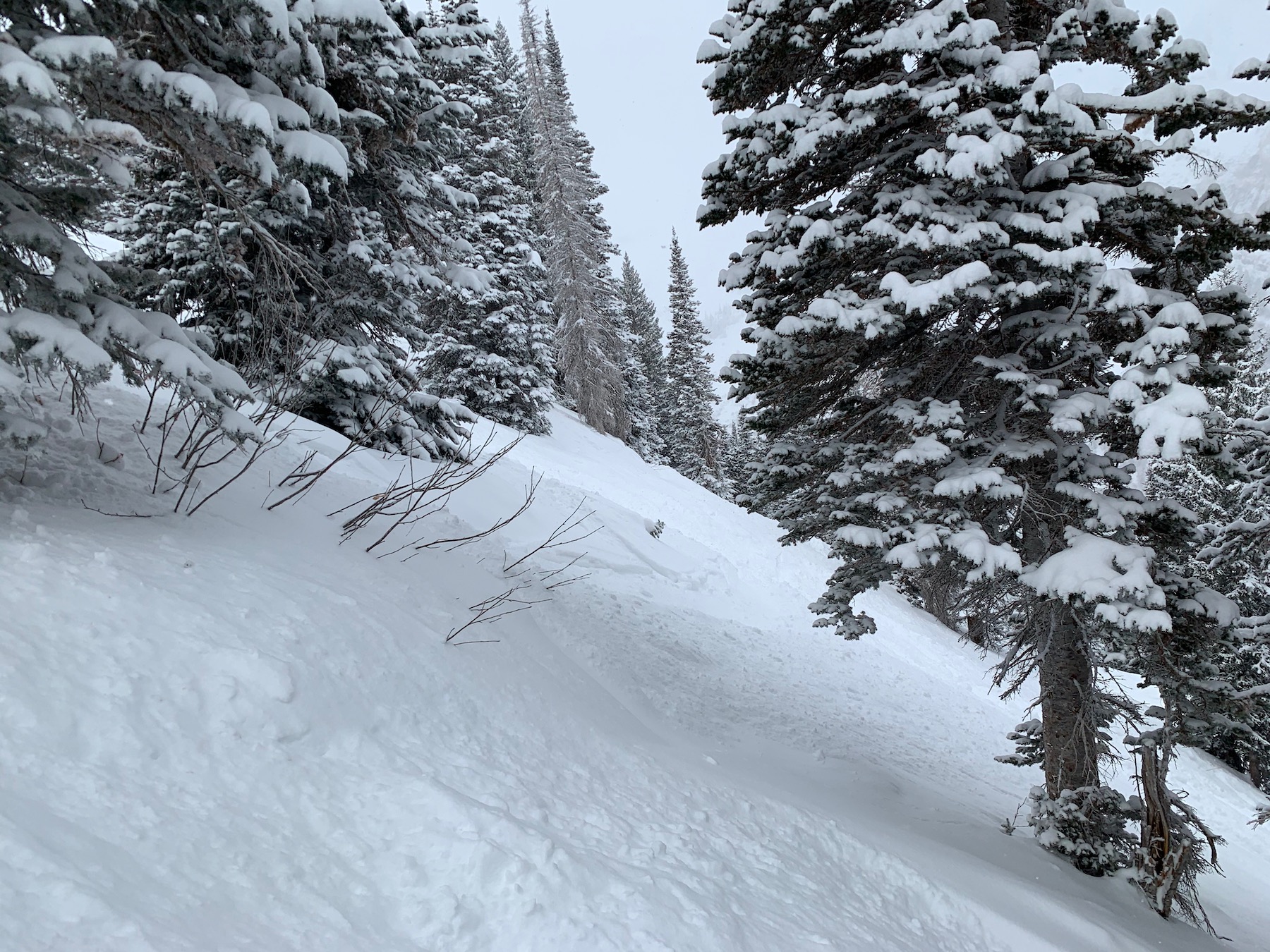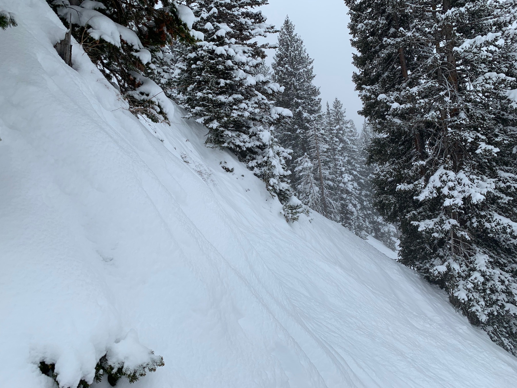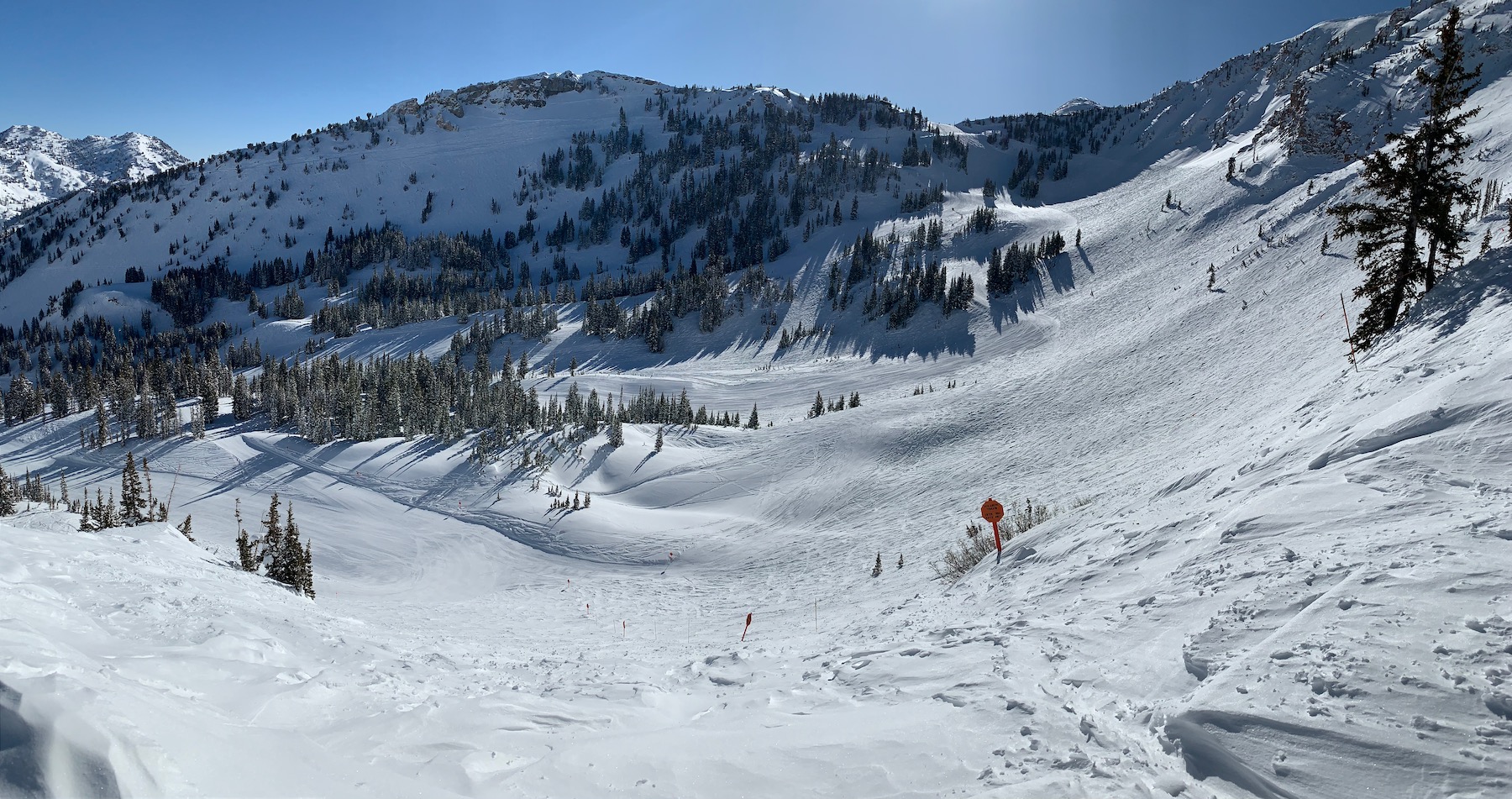 Still mostly on-piste, but now I’m over in Collins Gulch. Wildcat had enough cover to take Johnson’s Warm Up and Punch Bowl a few times. I also got some runs off Baldy Shoulder, which is always a good time.