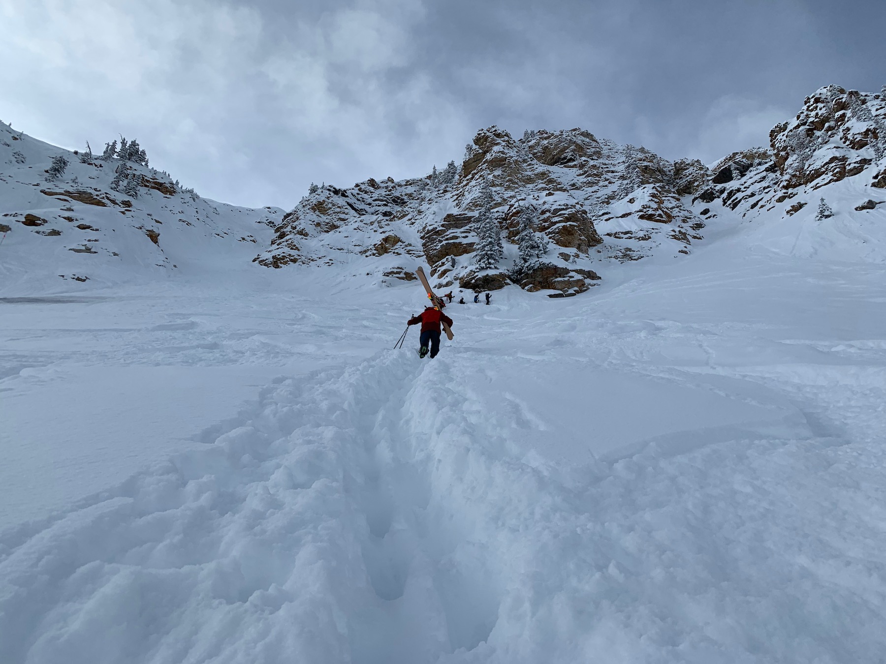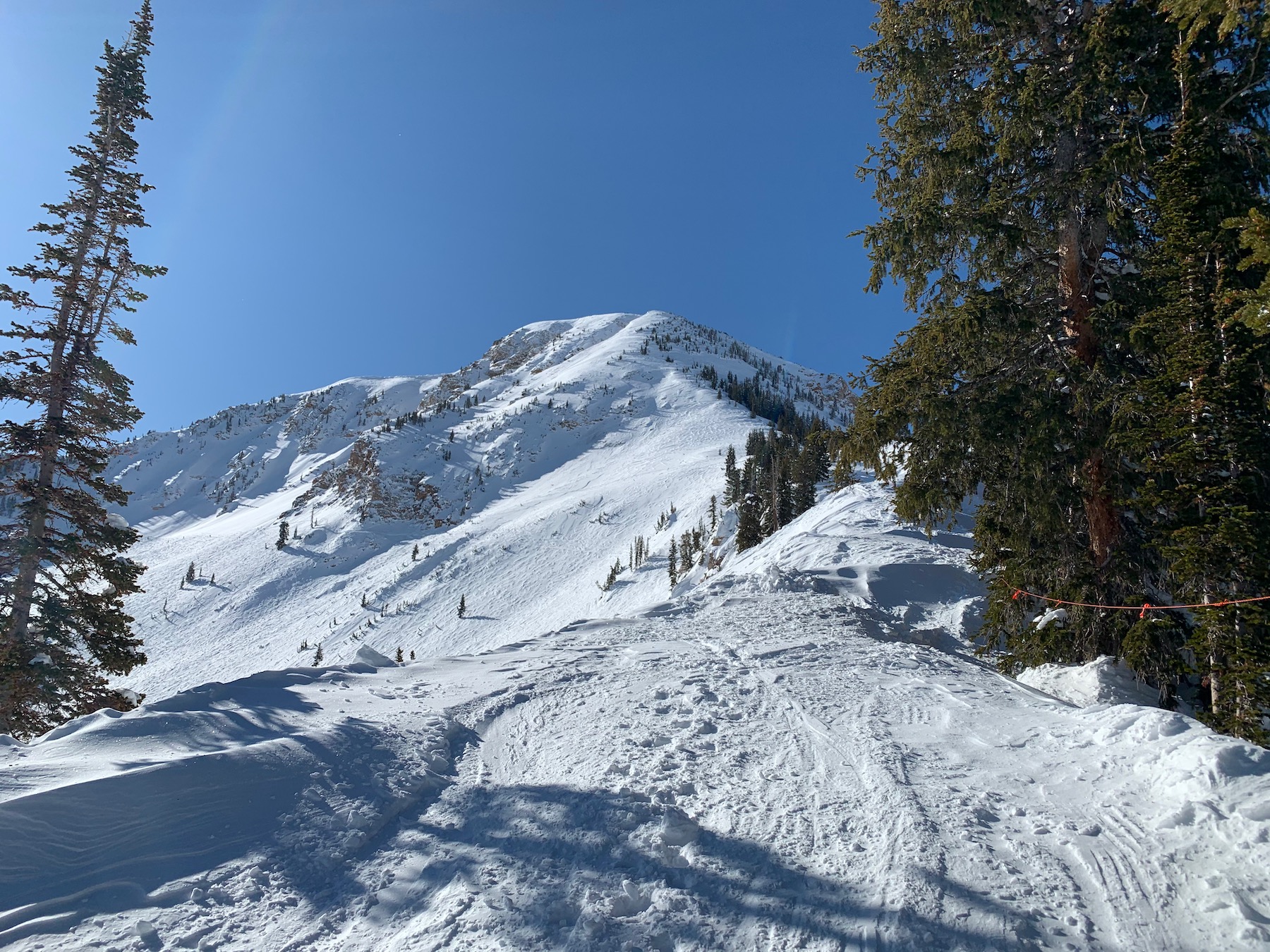 A big storm dropped over a foot on the 23rd of January. By the time I was able to get up on the 25th, everything was pretty buffed out, but they opened some new terrain below Perlas/Baldy Chutes (this was the first time I had ever been able to hike up above the Ballroom Traverse) and a dozen people were ahead of me, still plenty of space for my own tracks.